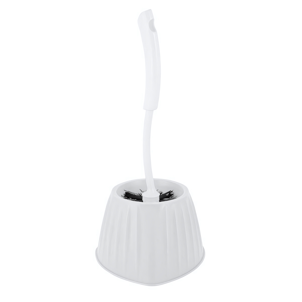 Ершик имеет длинную белую ручку и черную щетину, что делает его не только функциональным, но и стильным аксессуаром для ванной. Подставка выполнена в форме усечённого конуса и окрашена в белый цвет, что добавляет элегантности. Этот ершик станет незаменимым помощником в поддержании чистоты вашей сантехники.