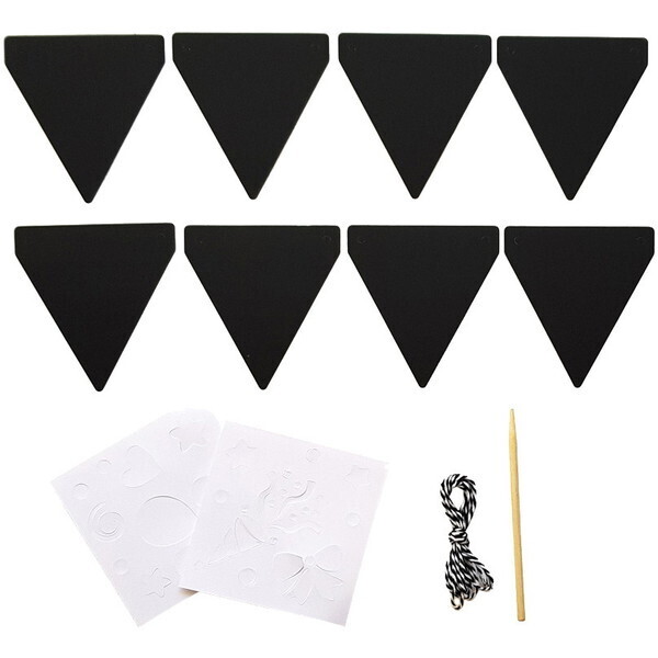 Размер каждого флажка составляет 14,5х14,5 см, что делает их удобными для использования в различных декорациях. Материал — бумага, что обеспечивает легкость и простоту в работе. В комплект также входит черная и белая веревка для подвешивания, а также деревянная палочка для создания надписей на белых картонных листах с рельефными рисунками. Этот набор станет отличным помощником в создании праздничного настроения!