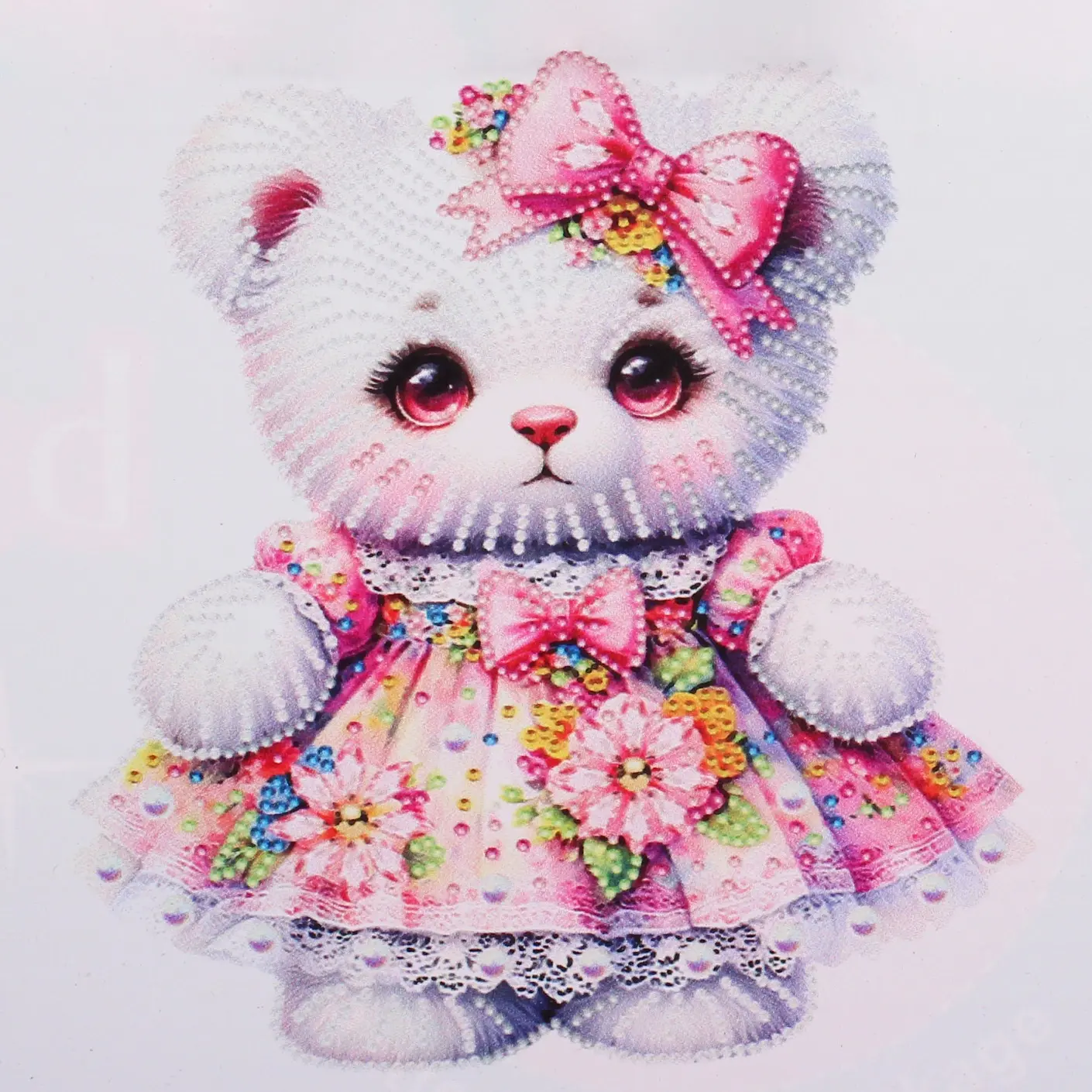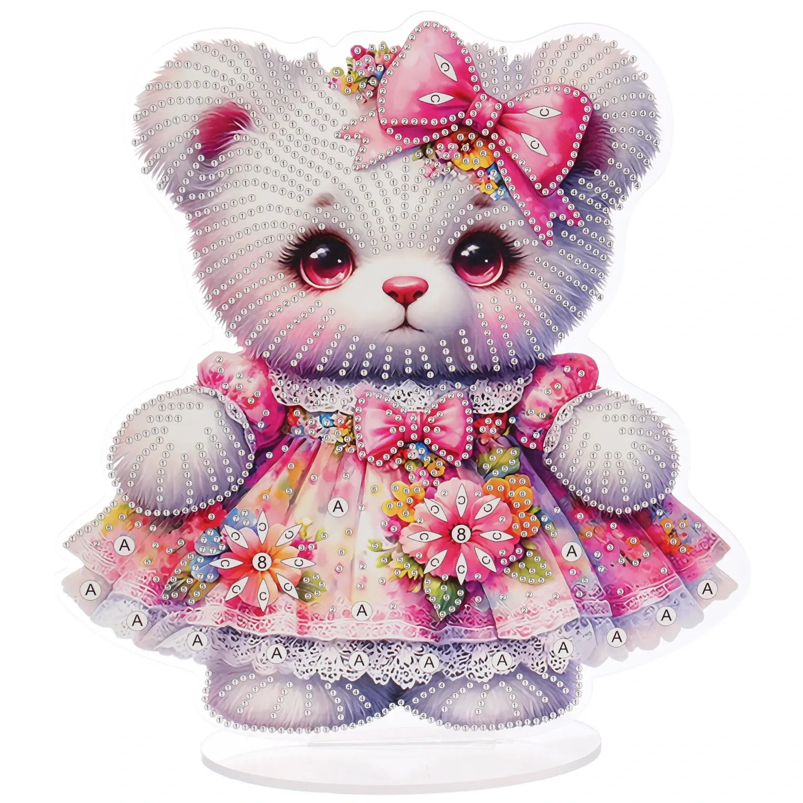 Набор для творчества 'DIAMOND' позволит вам создать очаровательного медвежонка в элегантном платье, который станет прекрасным подарком или украшением интерьера.