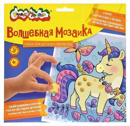 Набор для творчества мозаика 20х20см 'Единорог', от 3 лет, самоклеящиеся детали