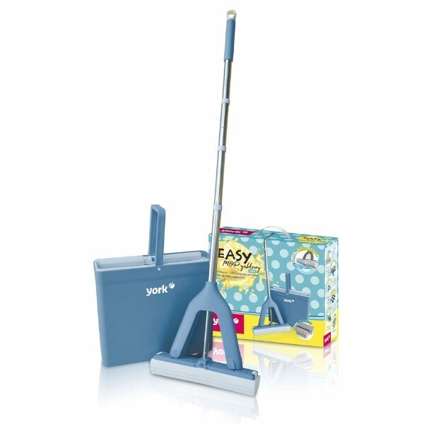 Набор для уборки "Изи" швабра с губкой и ведро 8л, отжим, насадка YORK