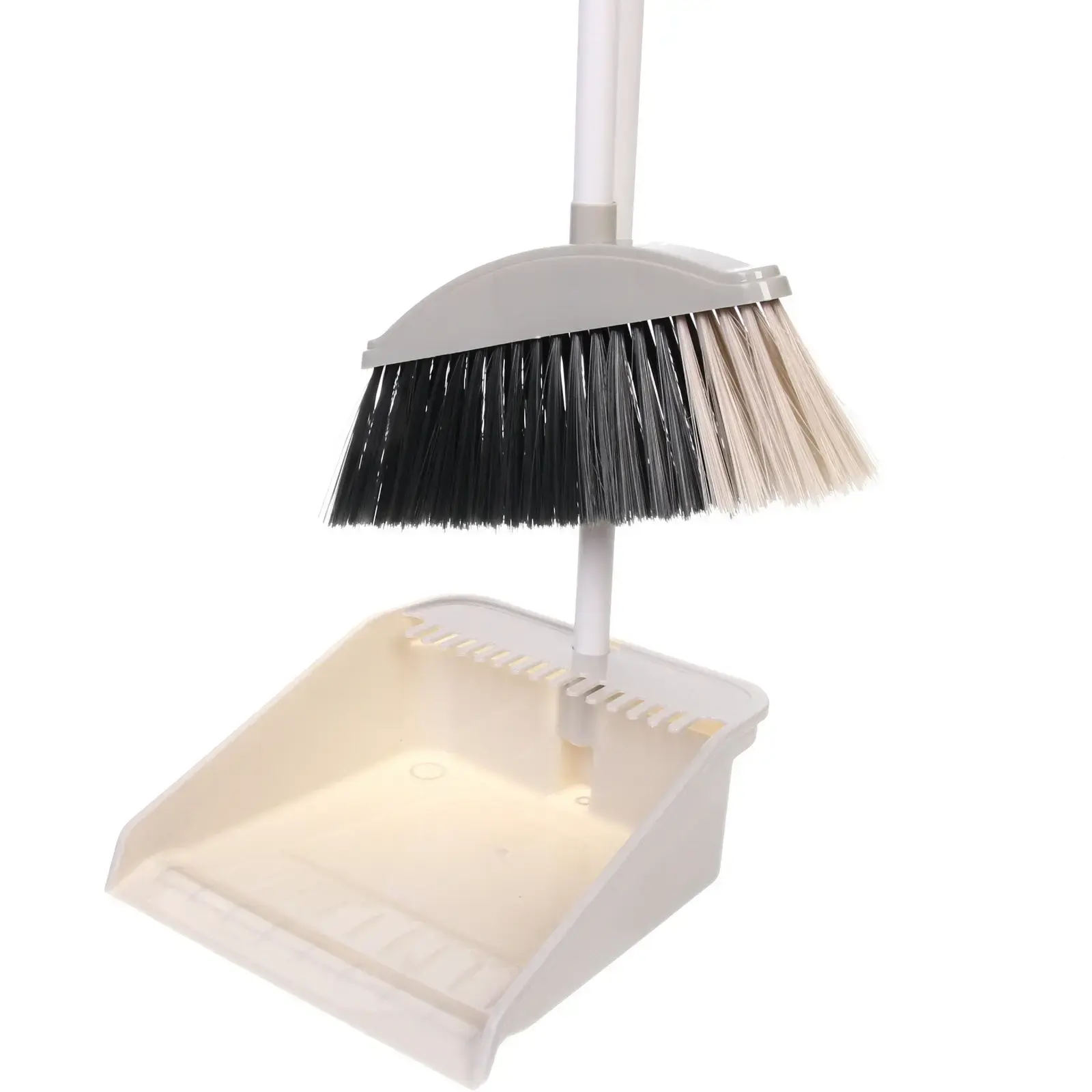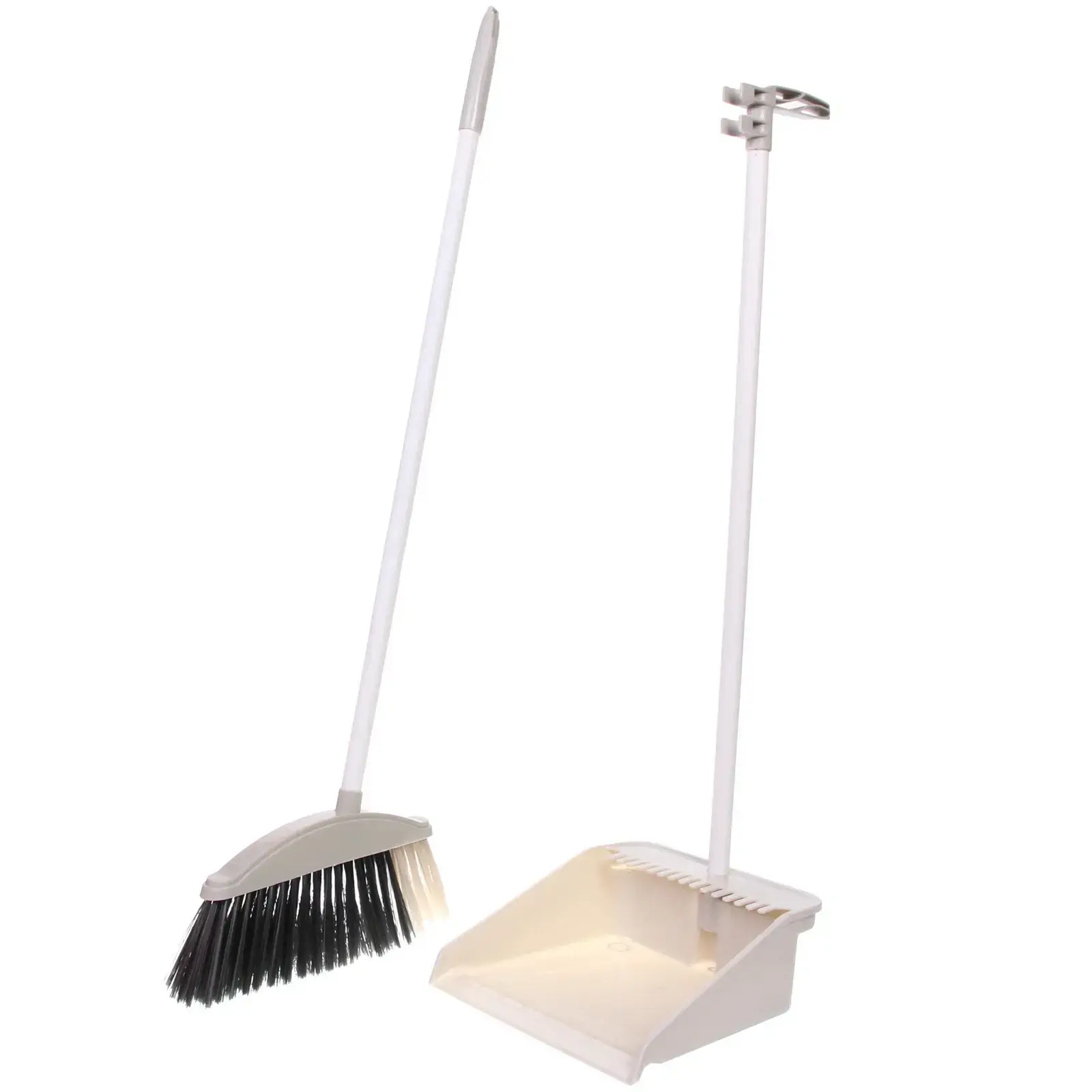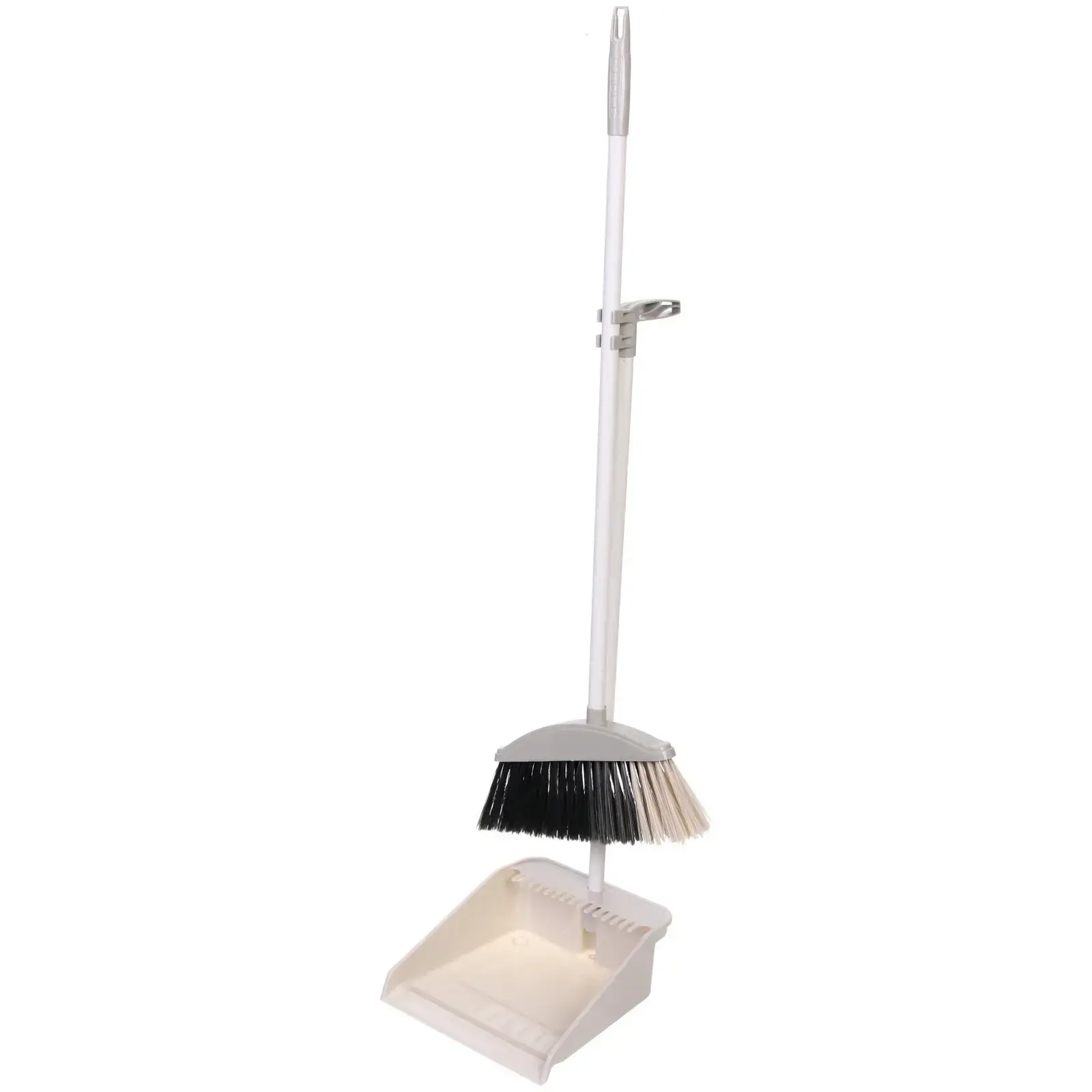 Набор для уборки «Clean»: щетка для пола с совком, 75 см, светло-бежевый, металл/микрофибра/пластик