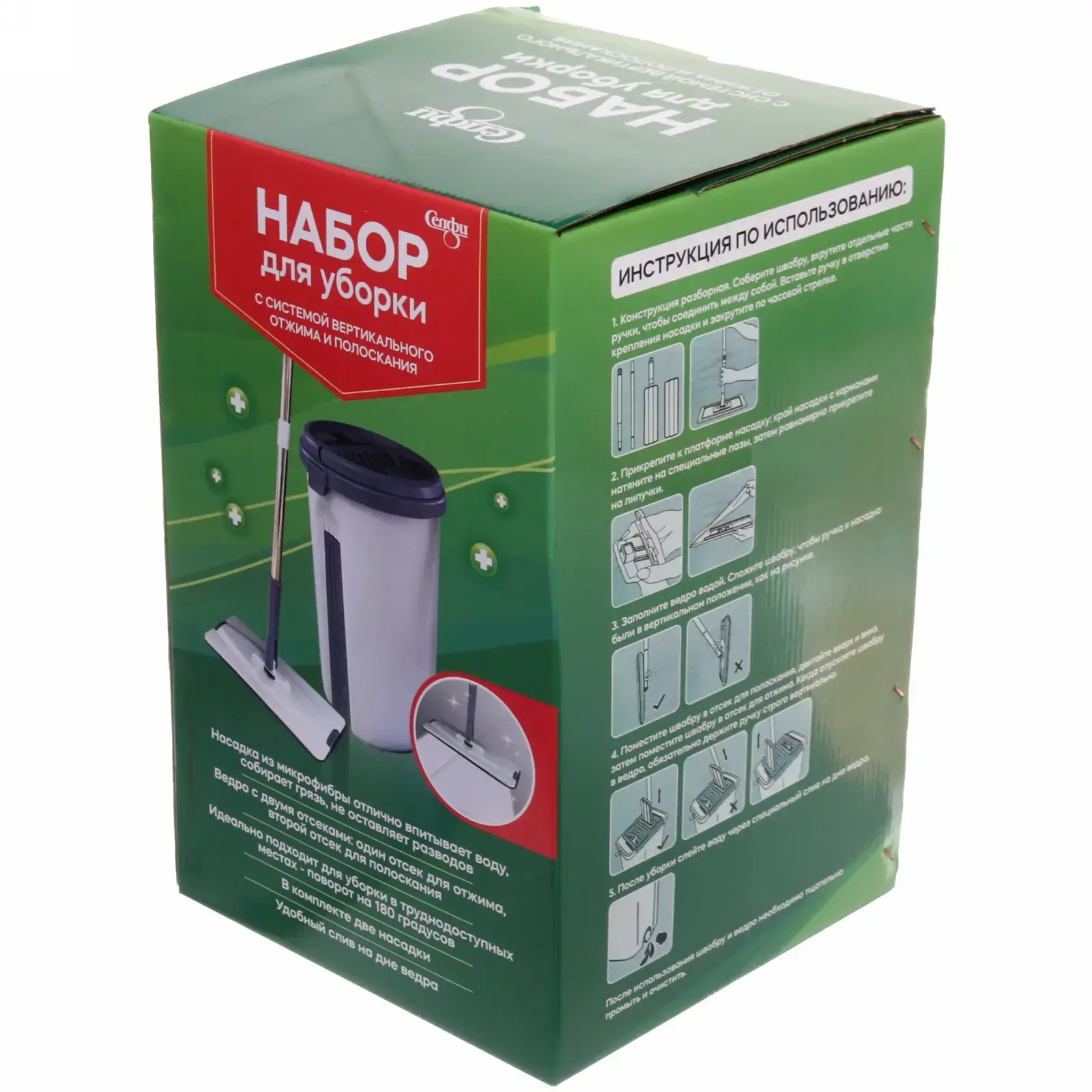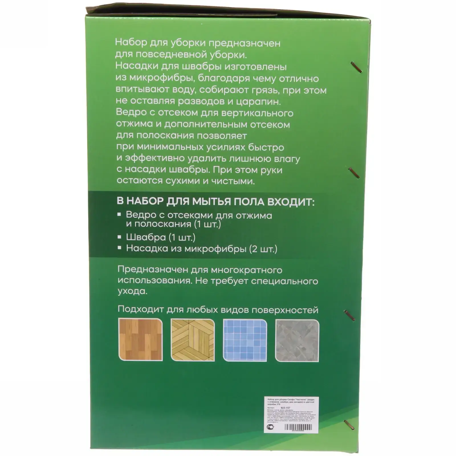 Набор для уборки Селфи Чистюля: ведро с отжимом 10 л, швабра 120 см, 2 насадки из микрофибры, серый