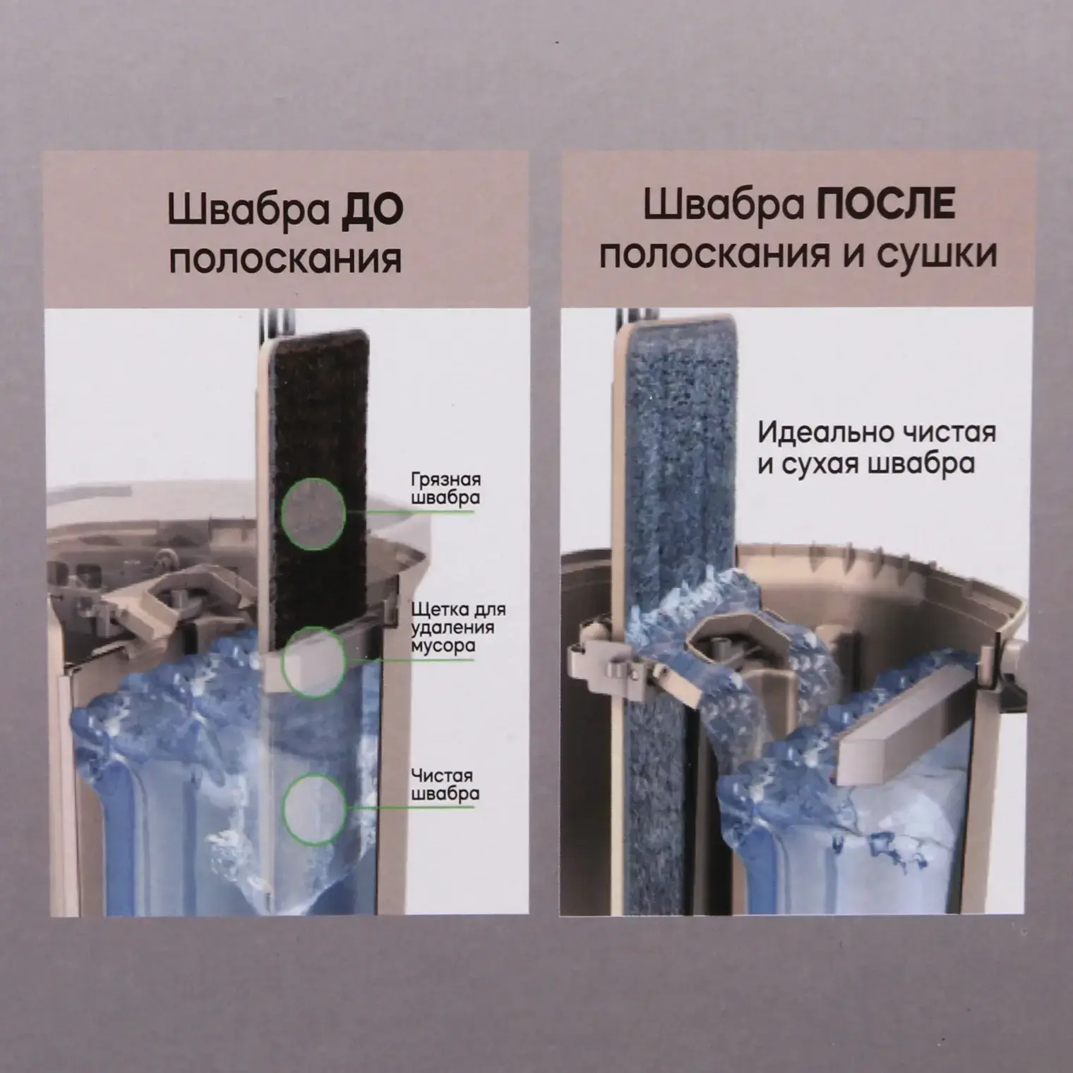 - 💧 Двухсекционное ведро 7л — отдельные зоны для чистого раствора и отжима
