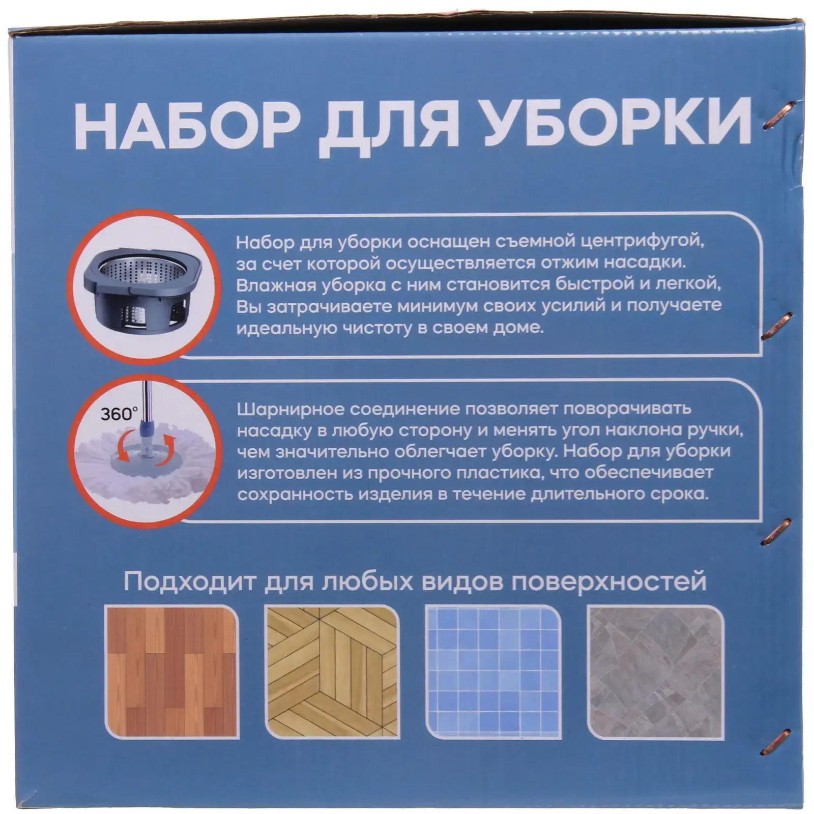 Ведро выполнено из прочного пластика, а швабра имеет металлическую конструкцию, что обеспечивает долговечность и надежность. Насадки легко заменяются, что позволяет поддерживать их в идеальном состоянии. Набор подходит для использования как в домашних условиях, так и в офисах, обеспечивая быструю и качественную уборку.