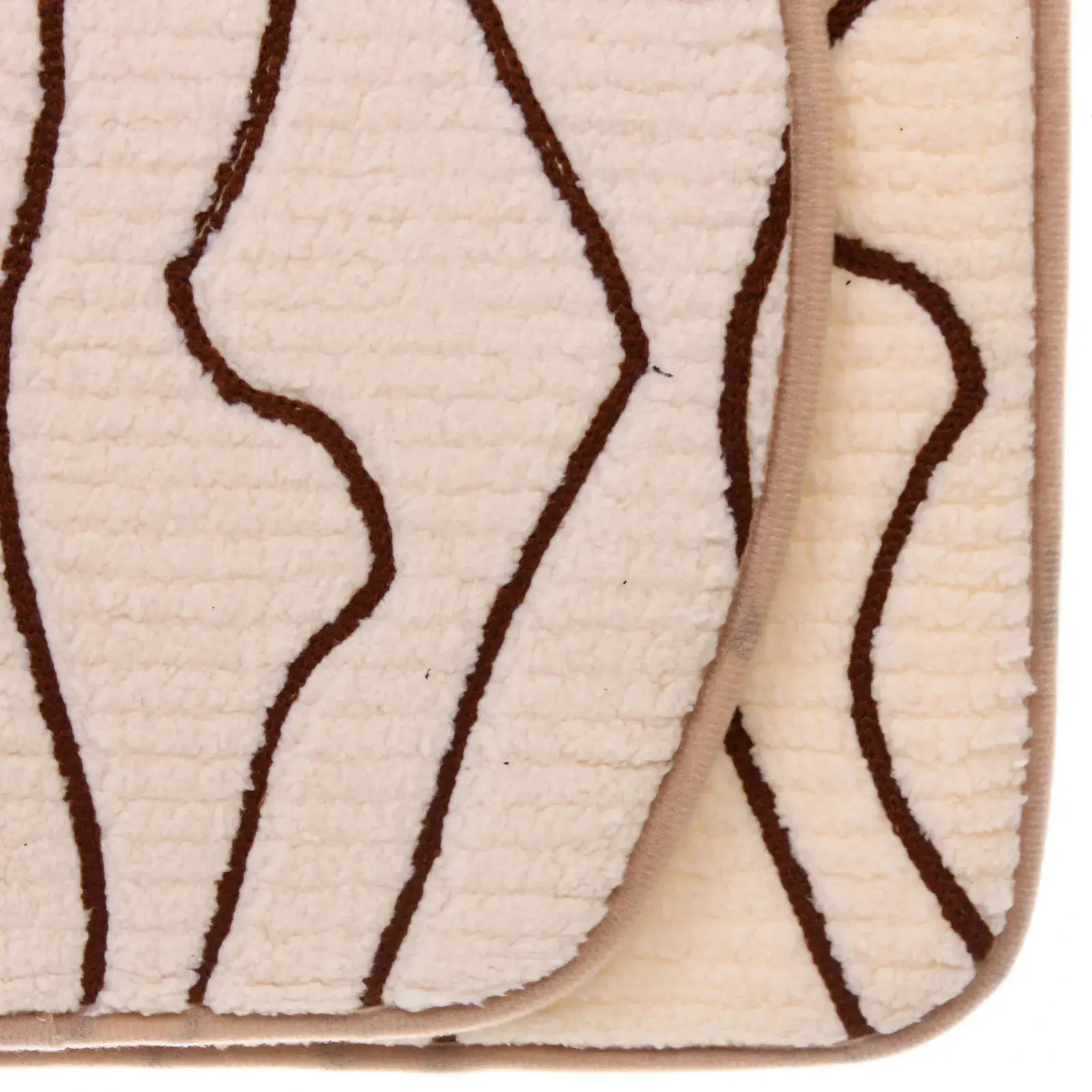 Размеры ковриков: 50х80 см и 50х40 см. Материал — полиэстер, который обеспечивает хорошую водонепроницаемость и легкость в уходе. Набор «Flo» станет отличным выбором для тех, кто ценит комфорт и стиль в своем доме.