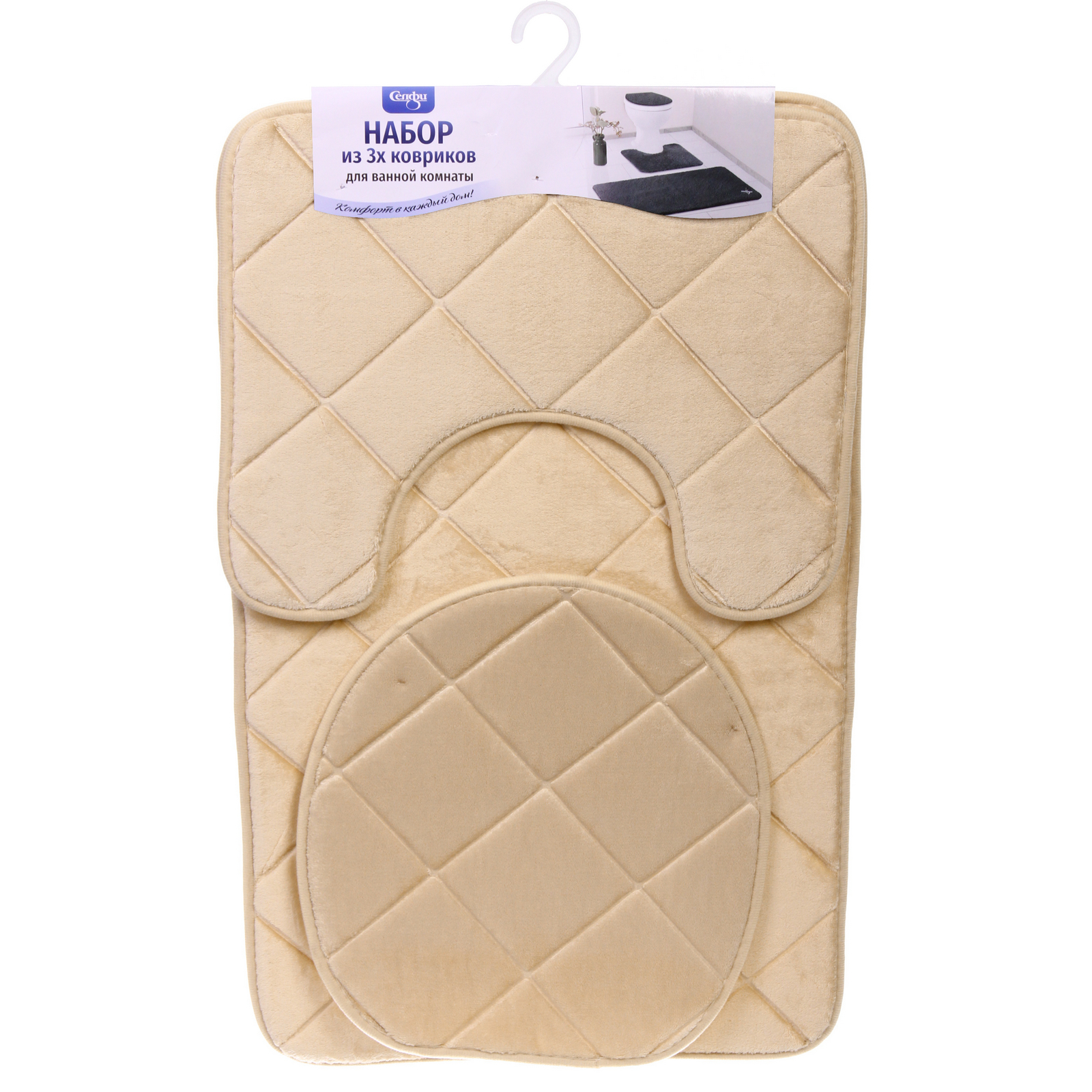 Набор из трёх практичных аксессуаров создаст комфортную атмосферу и защитит от скольжения на мокром полу. Мягкие коврики с антискользящей основой и стильный чехол на крышку унитаза — идеальное решение для современного интерьера.