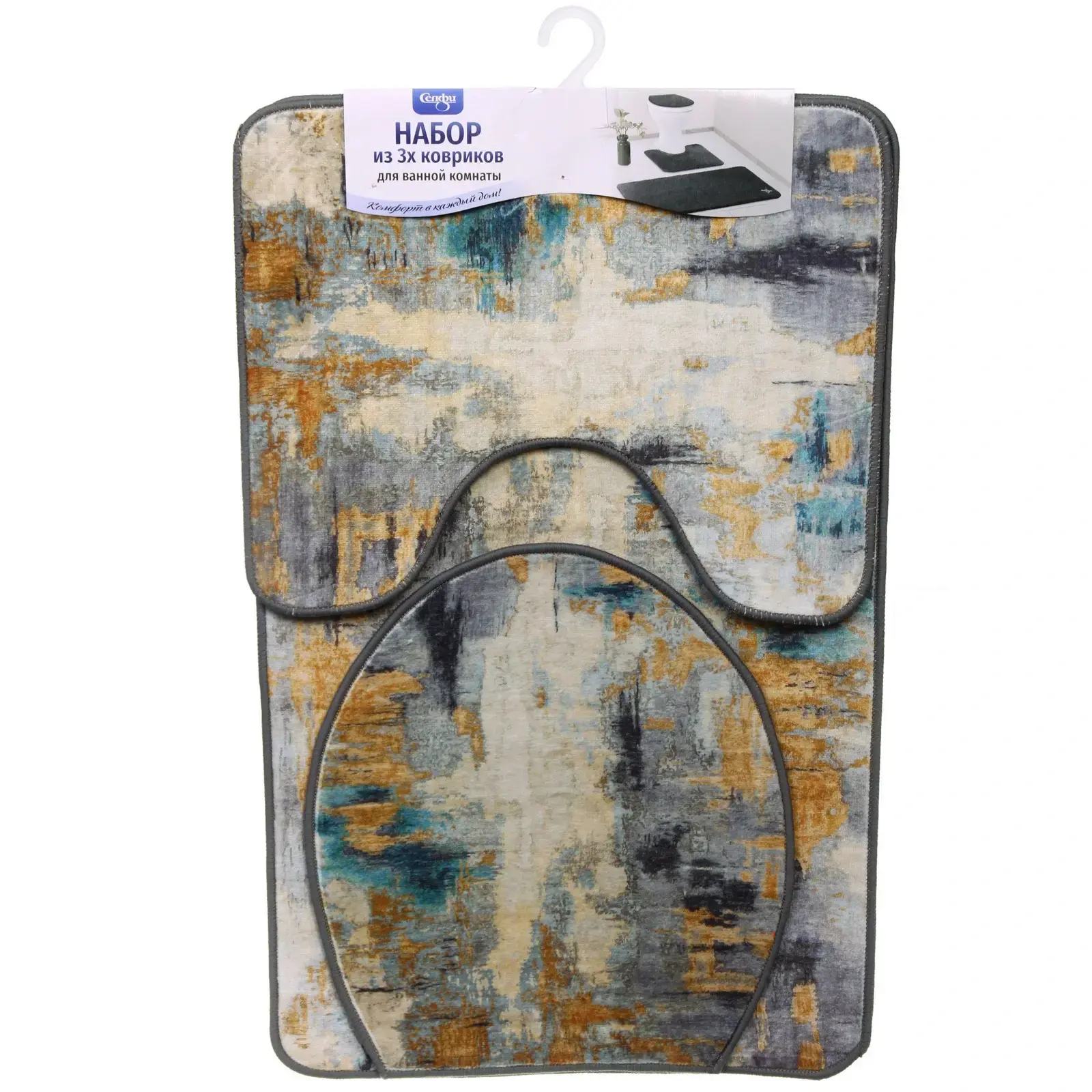 Комплект идеально подходит для квартир, загородных домов и гостевых санузлов. Коврики размещаются у ванны, раковины и унитаза, создавая единый стиль помещения. Гипоаллергенный материал безопасен для людей с чувствительной кожей.