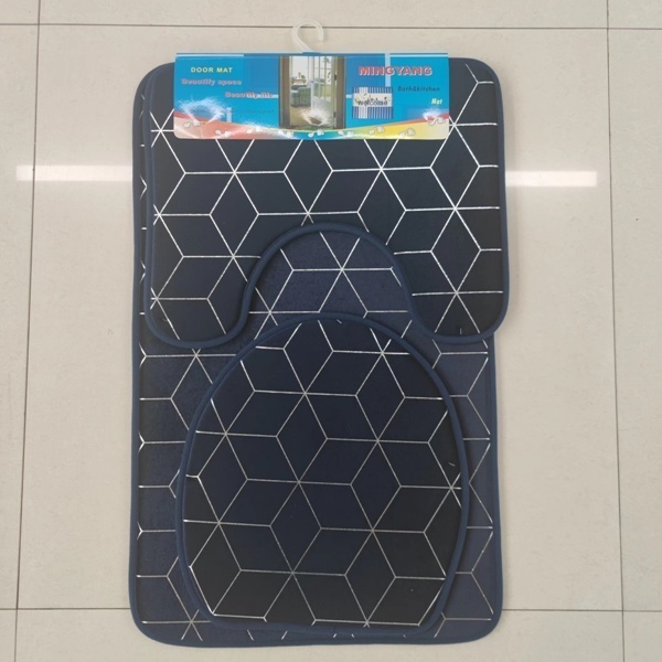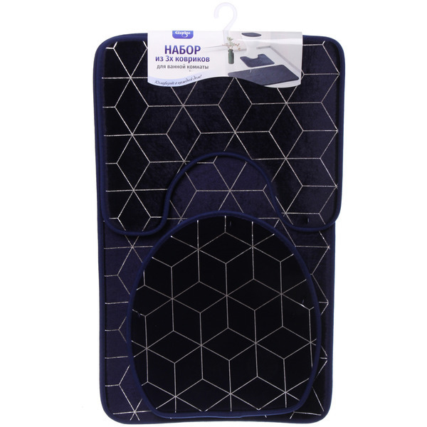 Выбирая набор «Rubin», вы получаете не только эстетическое удовольствие, но и практичность. Коврики легко чистятся и быстро сохнут, что экономит ваше время. Темно-синий цвет с геометрическим узором в виде шестиугольников добавляет современный штрих в интерьер.