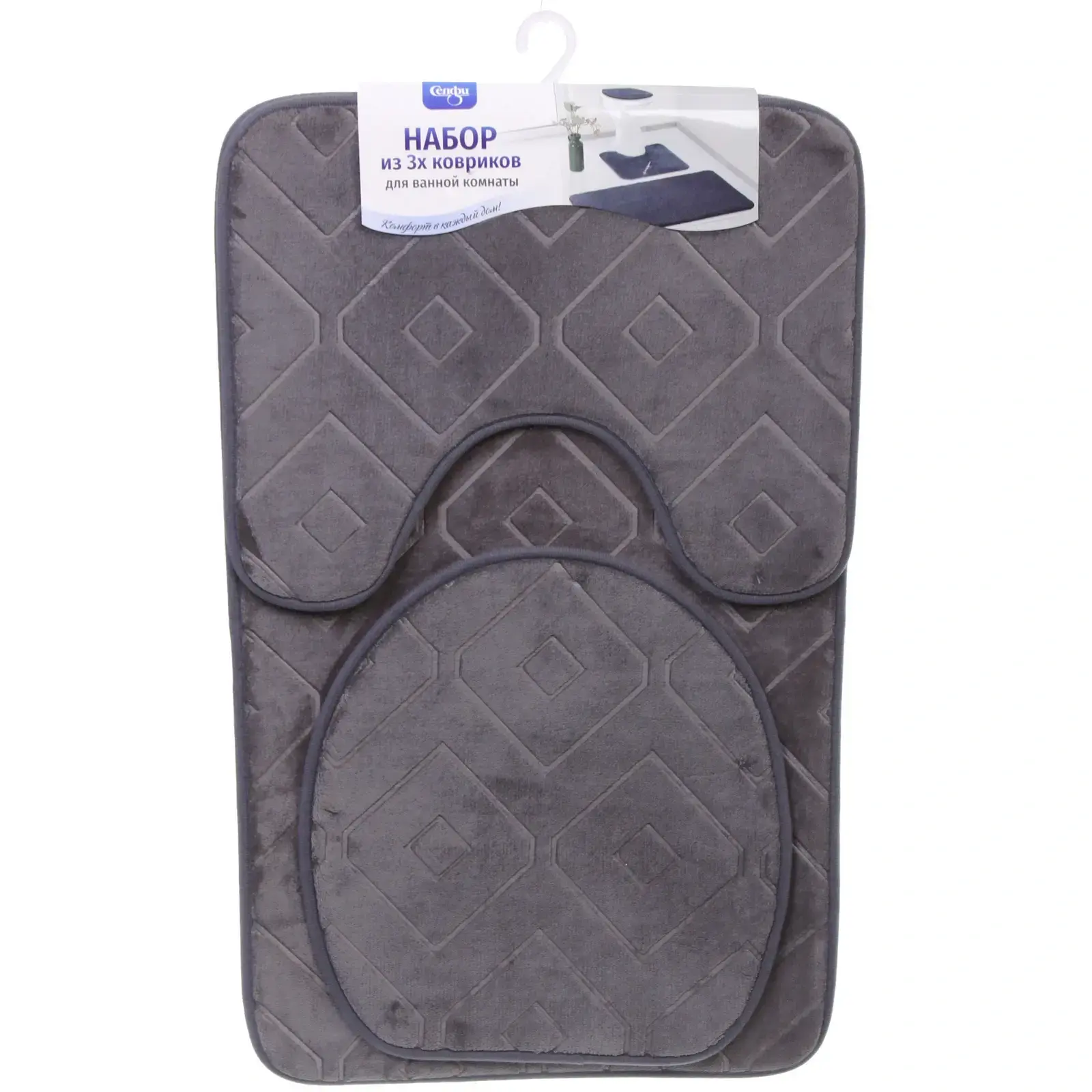 Набор для ванной и туалета «Rut» — это идеальное решение для создания уюта и безопасности в вашем доме. Состоит из трех предметов: двух ковриков и чехла на крышку унитаза, выполненных в элегантном сером цвете. Мягкий ворс ковриков подарит вам приятные ощущения, когда вы встаете босыми ногами после душа или ванны. Благодаря противоскользящему основанию, вы можете быть уверены в своей безопасности даже на мокром полу.