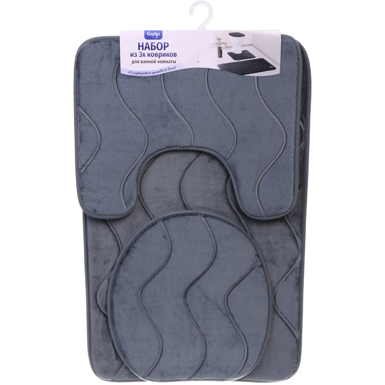 Набор для ванной «Волна», 3 предмета: коврик 50х80 см, 50х40 см, чехол, полиэстер, серый