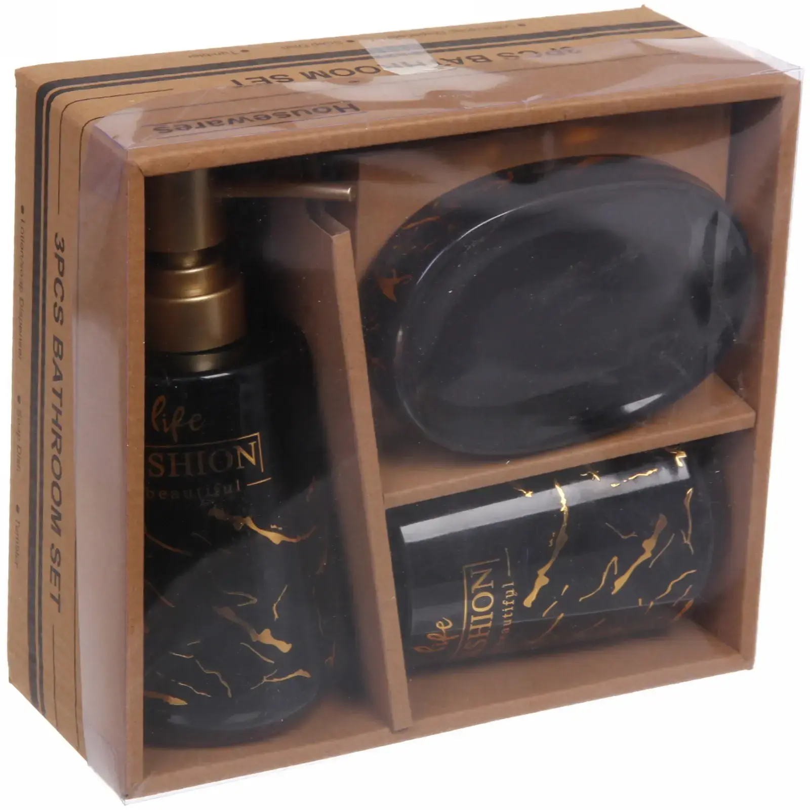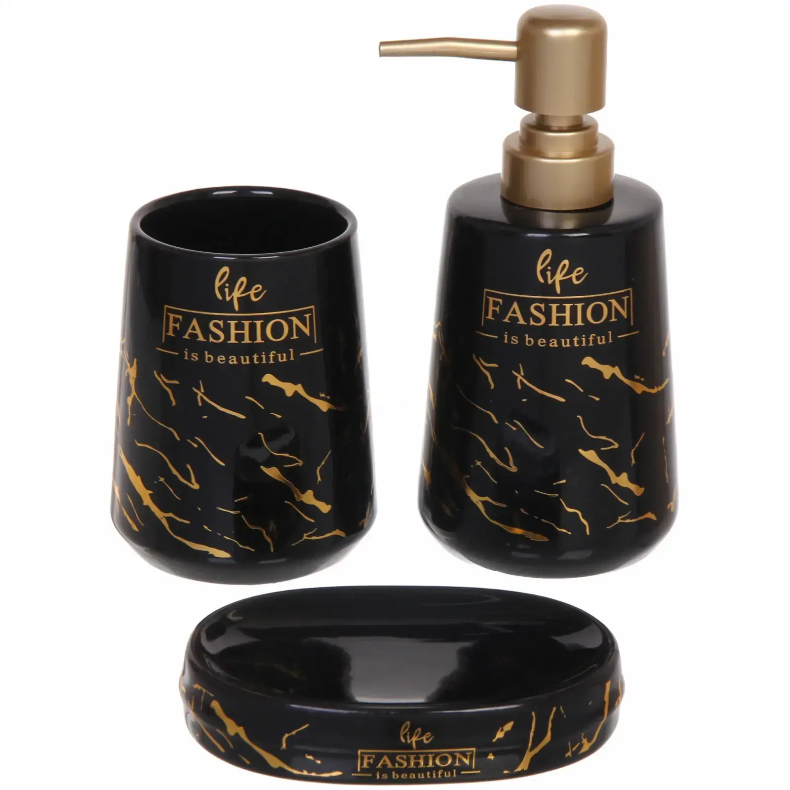 Набор для ванной «Мерида», 3 предмета: мыльница, дозатор, стакан, керамика, черный с золотым декором