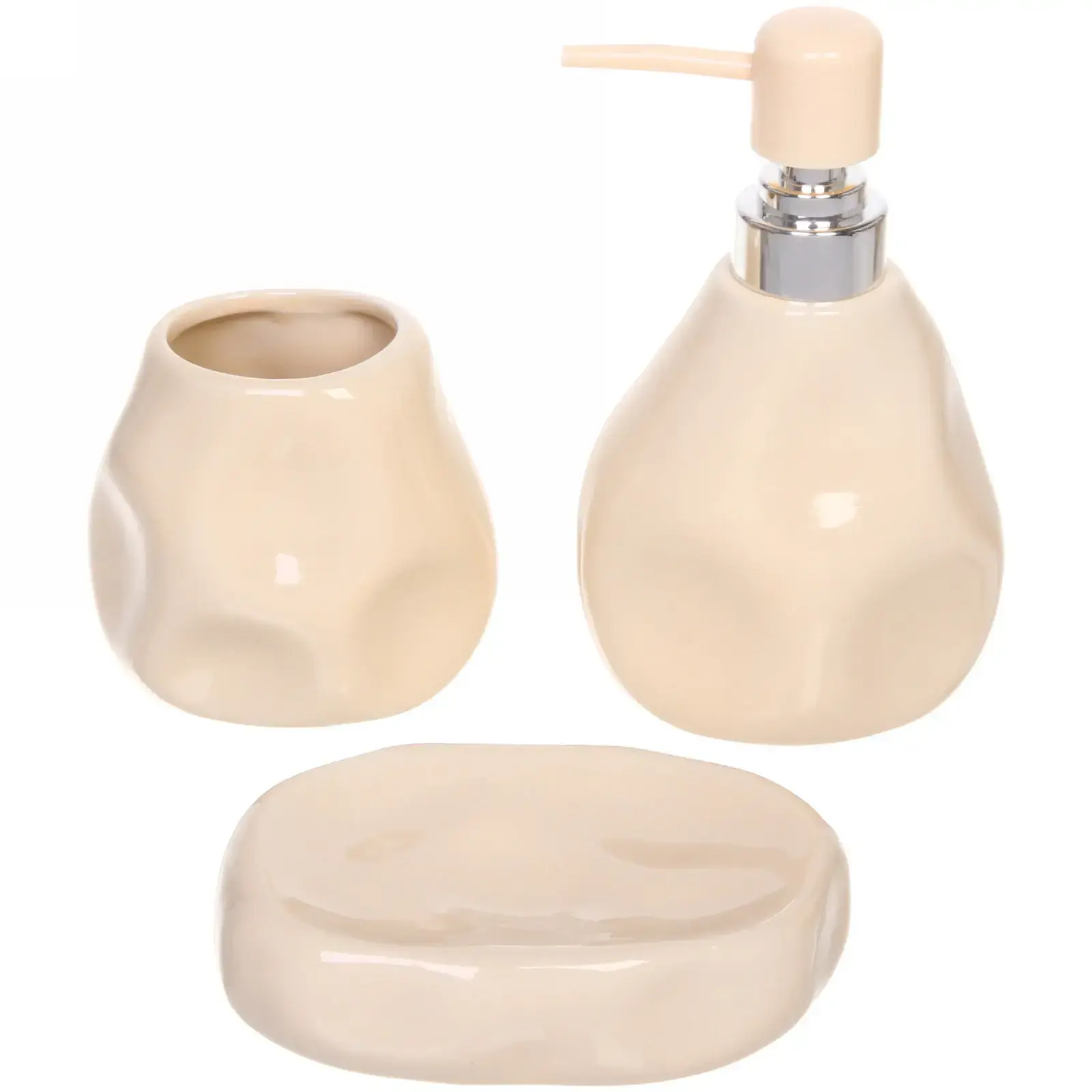 Набор для ванной 3 предмета керамический «Нежность», бежевый: мыльница, дозатор, стакан