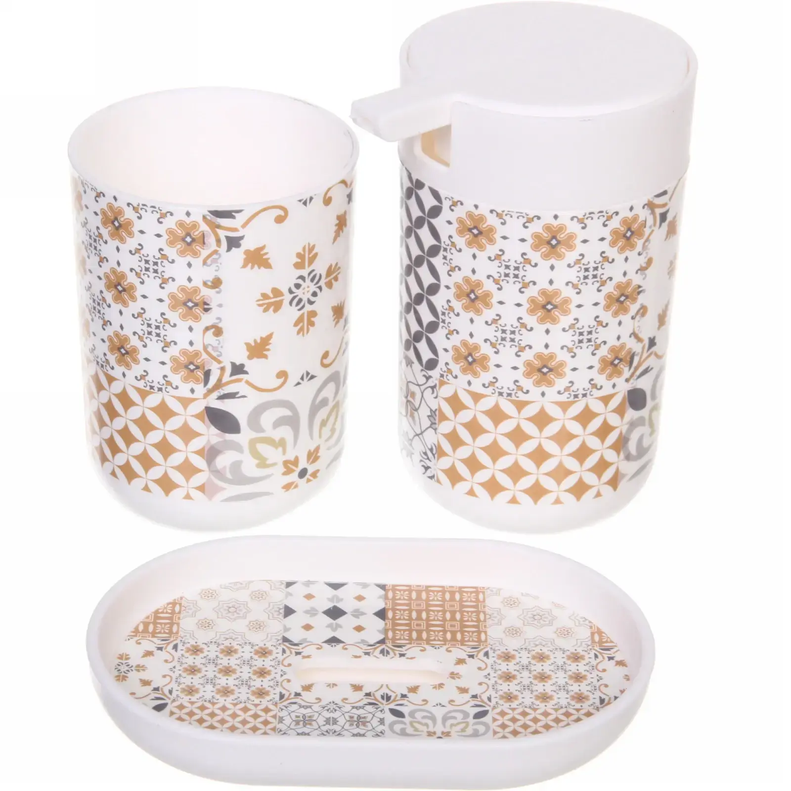 Преобразите вашу ванную комнату с набором для ванной «Мозаика», который не только украсит интерьер, но и значительно упростит организацию пространства. Этот набор включает в себя мыльницу, дозатор для жидкого мыла и стакан для зубных щеток, что делает его идеальным решением для хранения необходимых принадлежностей.