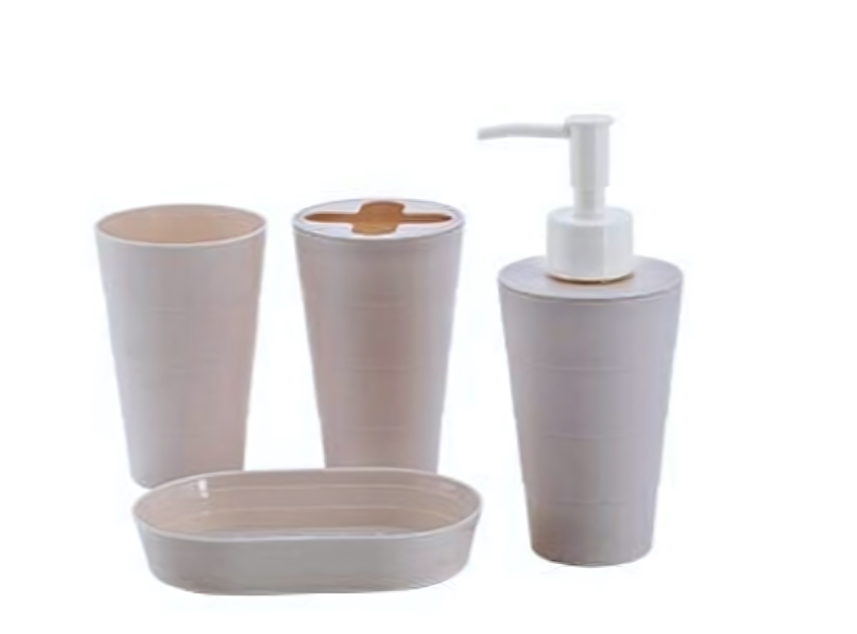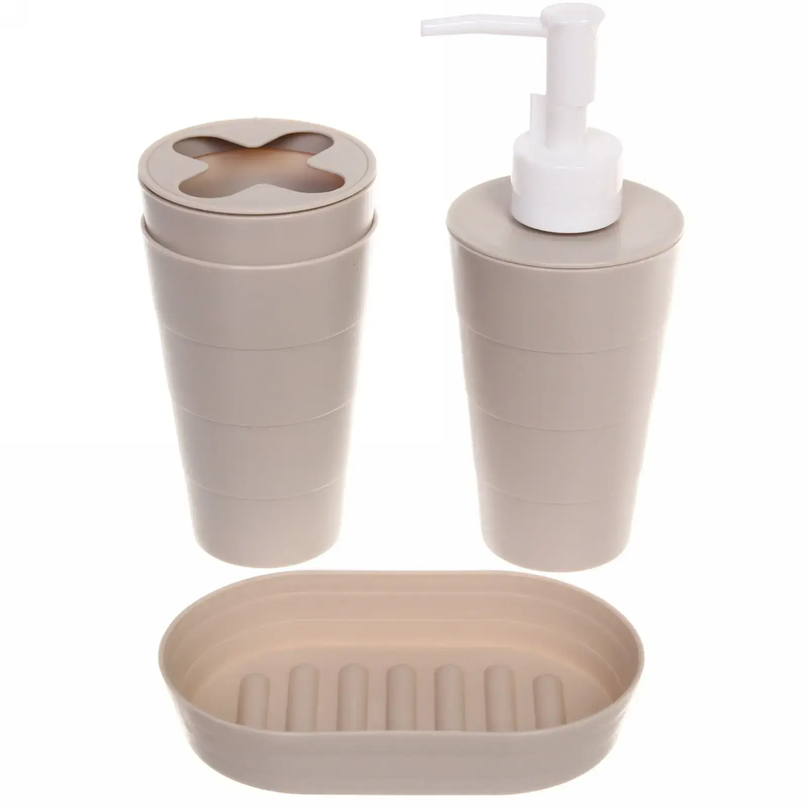 Набор для ванной 4 предмета: дозатор, мыльница, стаканы, подставка, пластик, бежевый, компактный дизайн