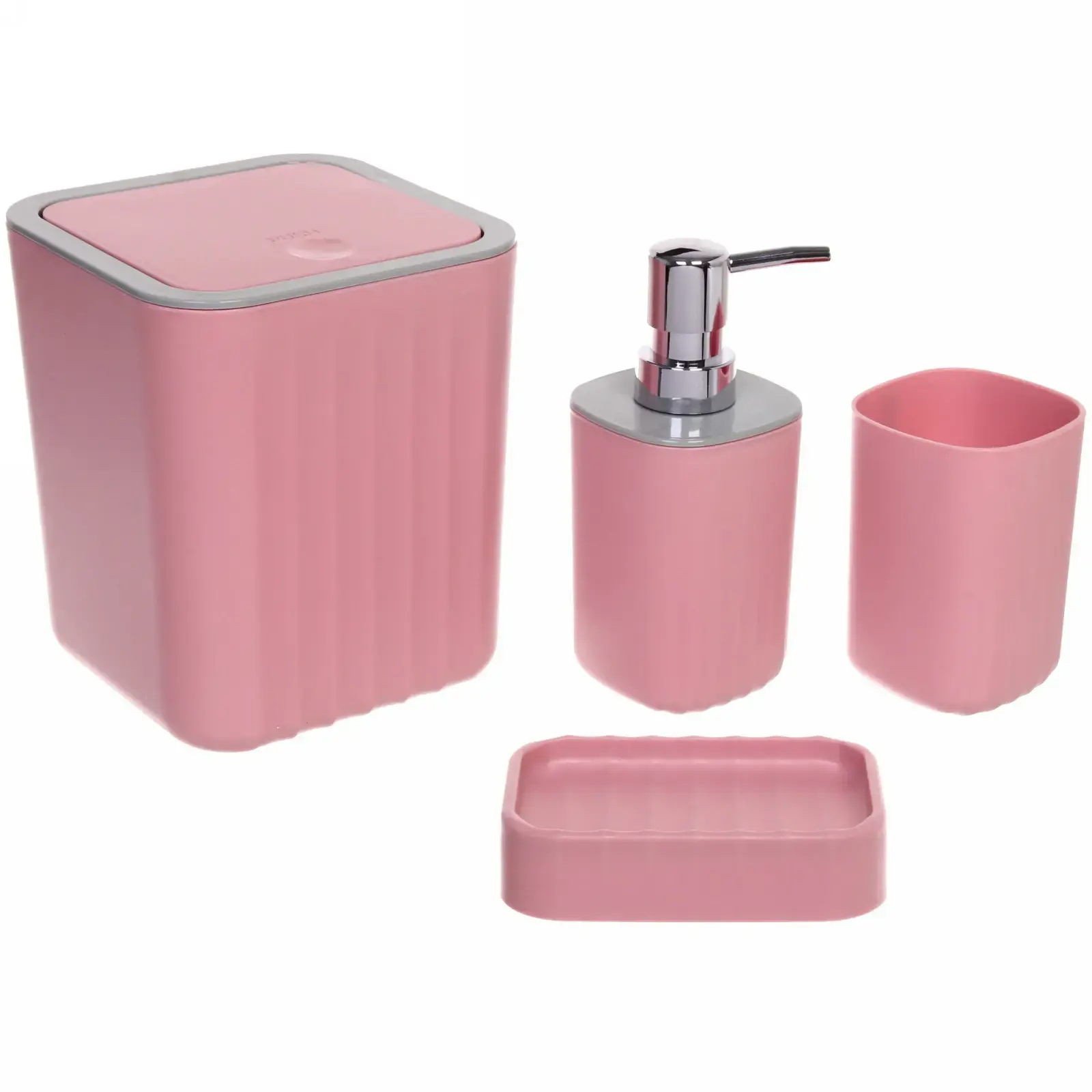 Комплект из 4 практичных аксессуаров создает идеальный порядок и дополняет интерьер нежными розовыми акцентами. Каждый предмет разработан с учетом эргономики и ежедневного комфорта.