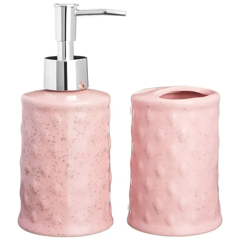 Набор для ванной 2 предмета: диспенсер с держателем, металл/керамика, розовый, 7х19 см