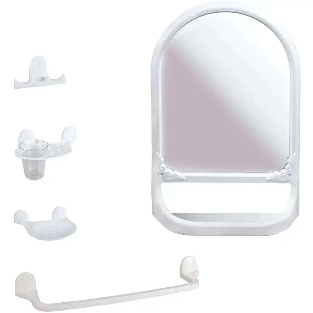 Зеркало с аксессуарами для ванной, белое, пластик, комплект из 5 предметов