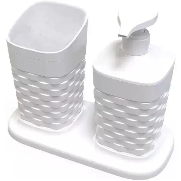 Набор для ванной "Reef": 3 предмета на подставке, пластик, белый цвет