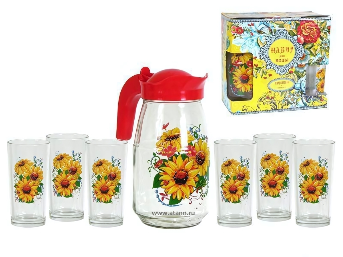 Набор для воды 'Подсолнух', 7 предметов, стекло, яркий дизайн