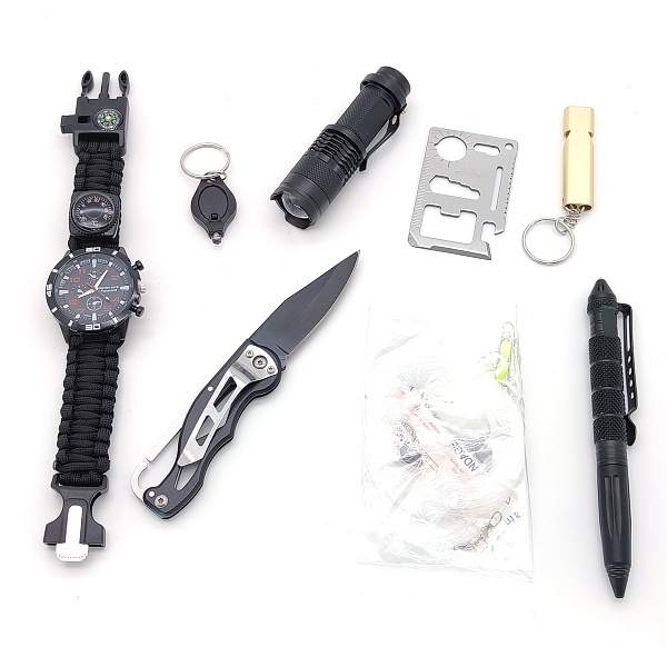 Каждый элемент набора продуман до мелочей, чтобы обеспечить максимальную практичность и удобство. Инструмент карта позволяет выполнять множество задач, а фонарик с несколькими режимами освещения поможет вам в темноте. Тактическая ручка и нож обеспечивают надежность и безопасность в любых условиях. Часы с компасом помогут вам не заблудиться, а дополнительные аксессуары пригодятся в экстренных ситуациях.