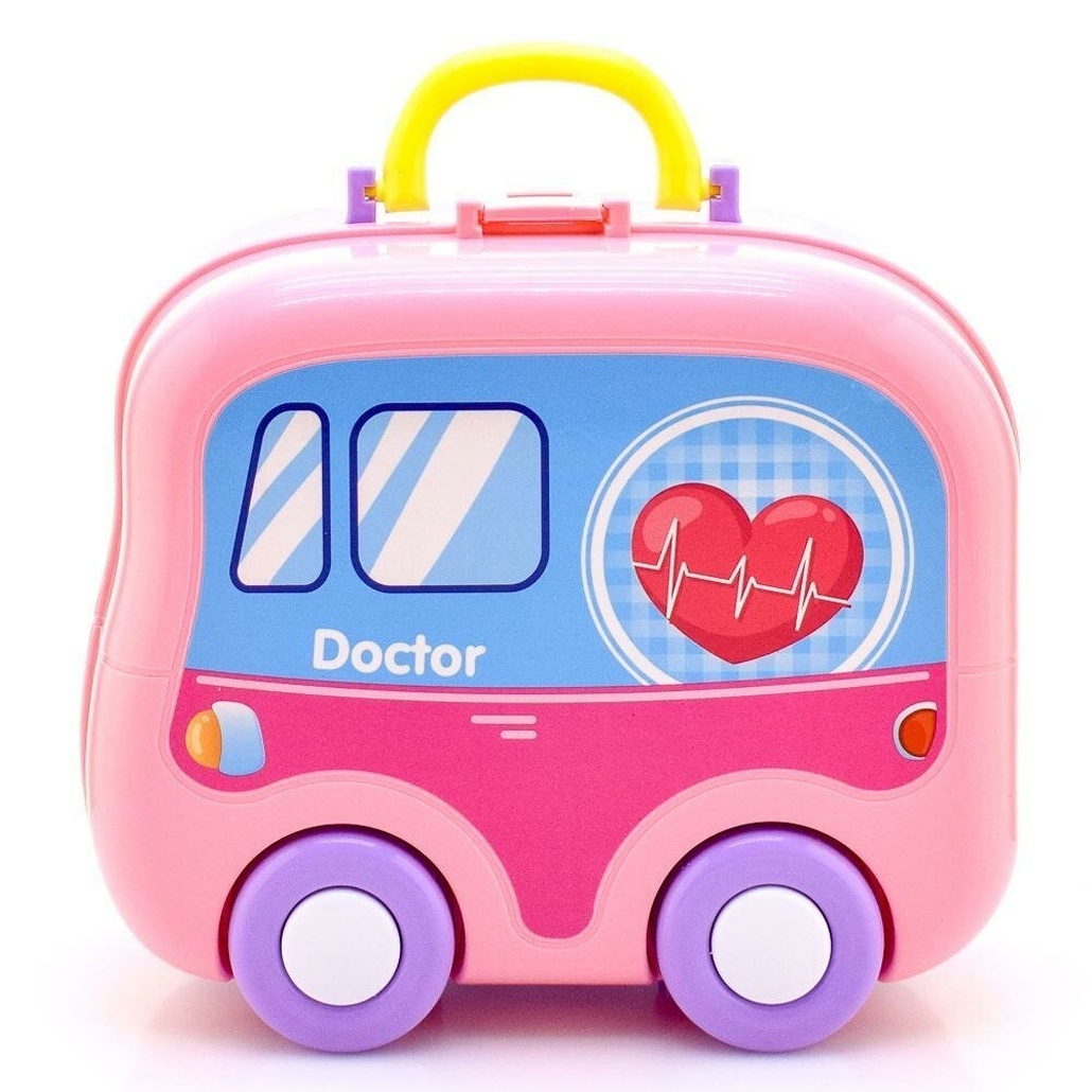 Игровой набор доктора в чемоданчике-машине, пластик, розовый, 23х12х21см