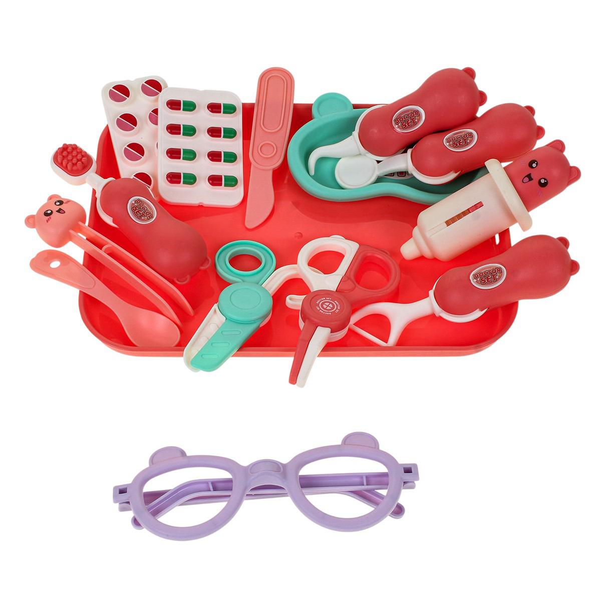 игровой набор доктора 17 предметов, пластик, розово-персиковый, для детей от 3 лет, в пакете 31x24x5 см