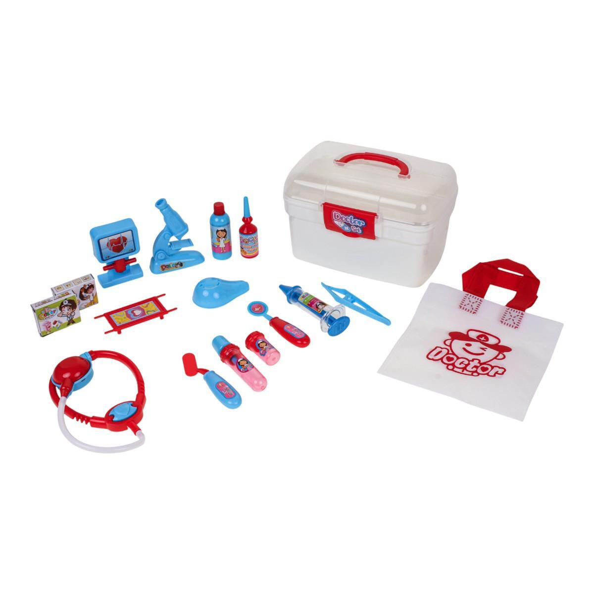 Набор включает 22 предмета, выполненных из безопасных и качественных материалов: медицинские инструменты, аксессуары, подсказки для сюжетных игр. Удобный пластиковый чемоданчик с ярким дизайном помогает легко хранить и переносить игровой набор, делая его идеальным для игр дома и на улице.