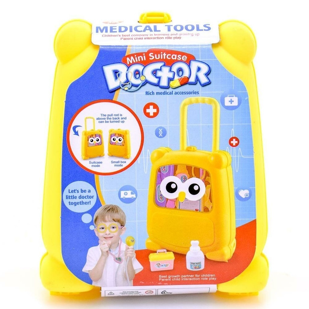 Набор доктора 'Doctor', жёлтый чемодан с инструментами, пластик, 22x15x7см