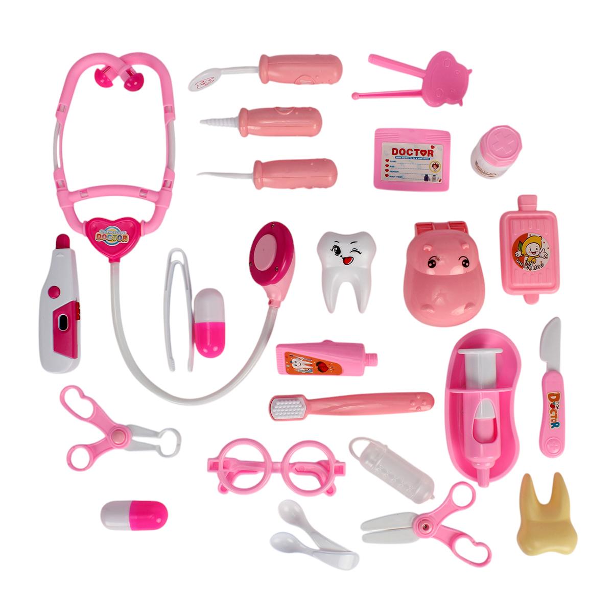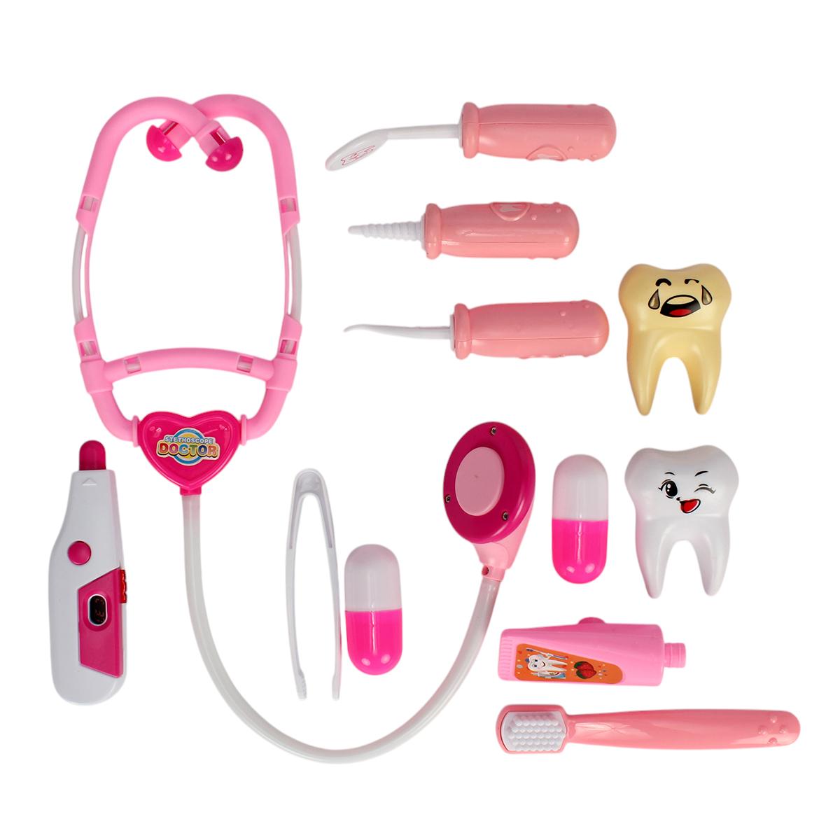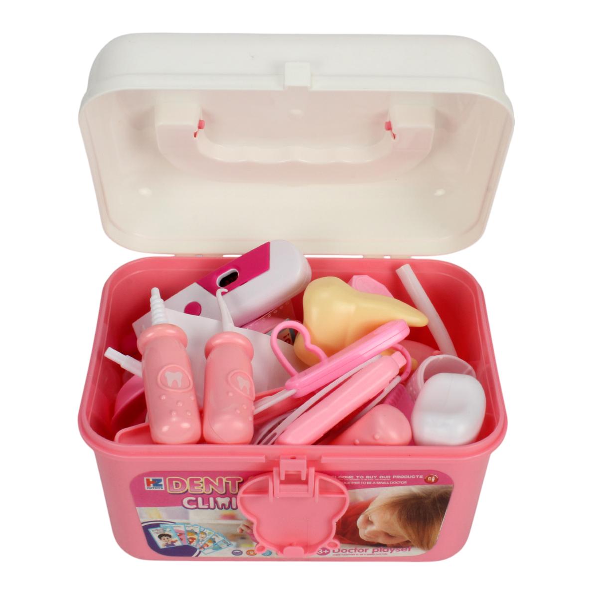Этот красочный и функциональный набор позволяет ребёнку почувствовать себя настоящим врачом или стоматологом. В прочном пластиковом кейсе с удобной ручкой хранятся 37 аксессуаров, включая стетоскоп, шприцы, термометр, зубную щётку, модель зуба и множество других инструментов. Яркая розово-белая цветовая гамма делает игру ещё более увлекательной и привлекает внимание детей.