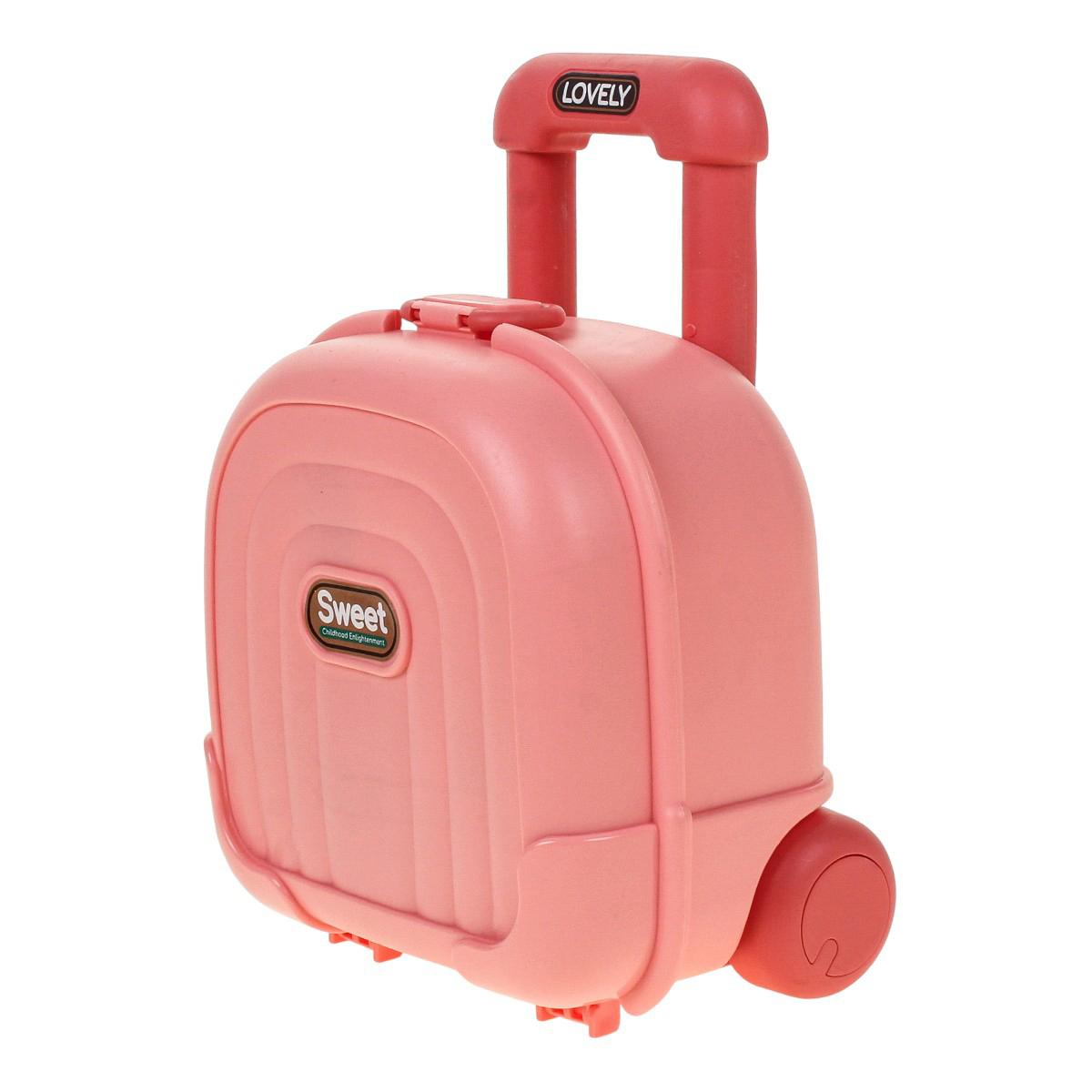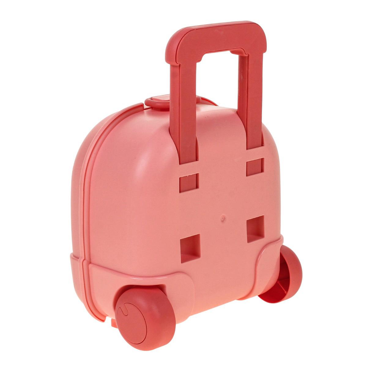Кейс закрывается на защёлки — мелкие детали не потеряются. Светлая палитра розового и голубого нейтрально впишется в любую детскую. Устойчивые колёса позволяют ребёнку катать чемодан самостоятельно, развивая ответственность: «Мой инструмент — мной привезён». 21×12×17 см легко помещается под кровать или на полку шкафа.