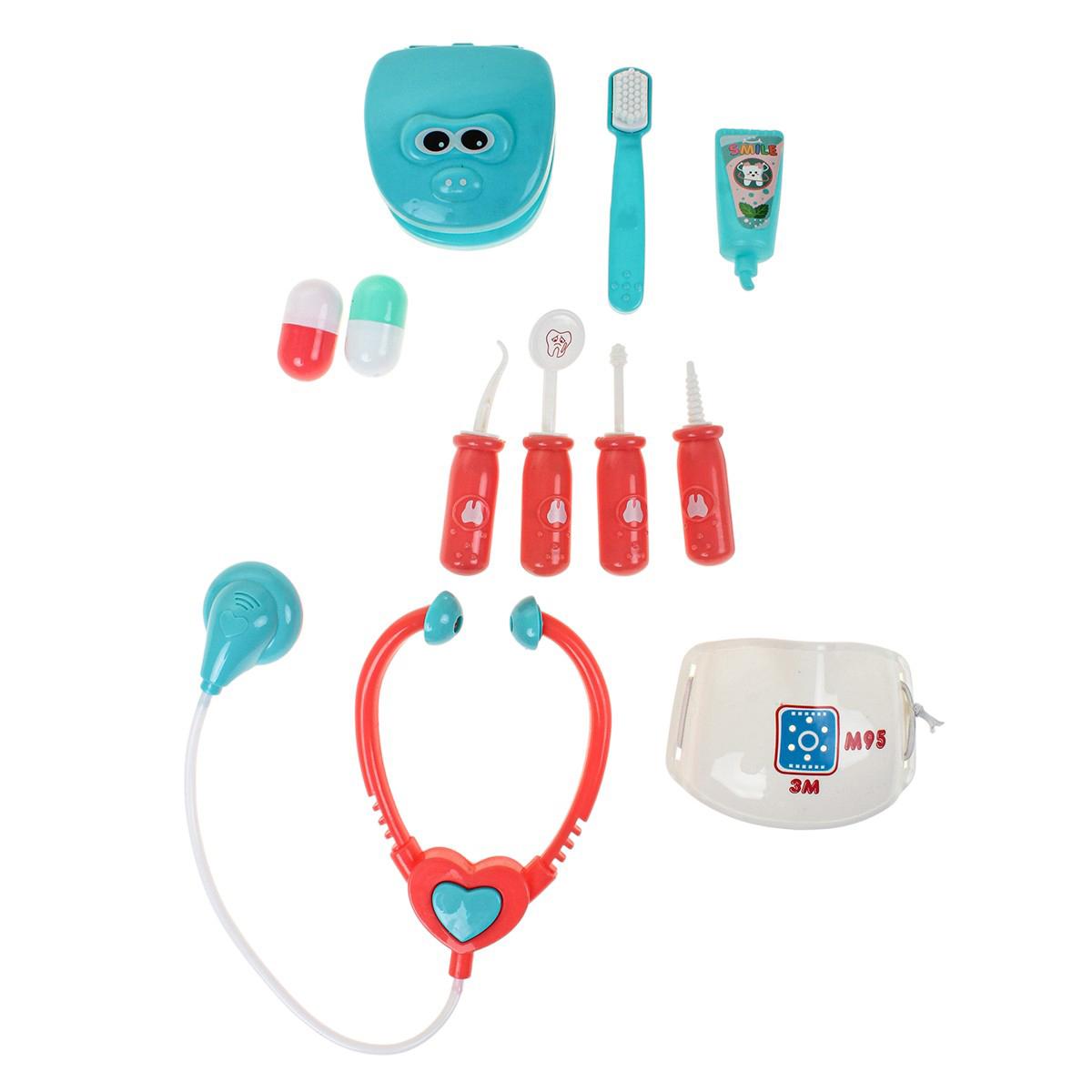 - медицинские аксессуары: стетоскоп, зеркальце, ирригатор, щетка, маска, паста, челюсть с зубами — для ролевых игр стоматолога и терапевта;