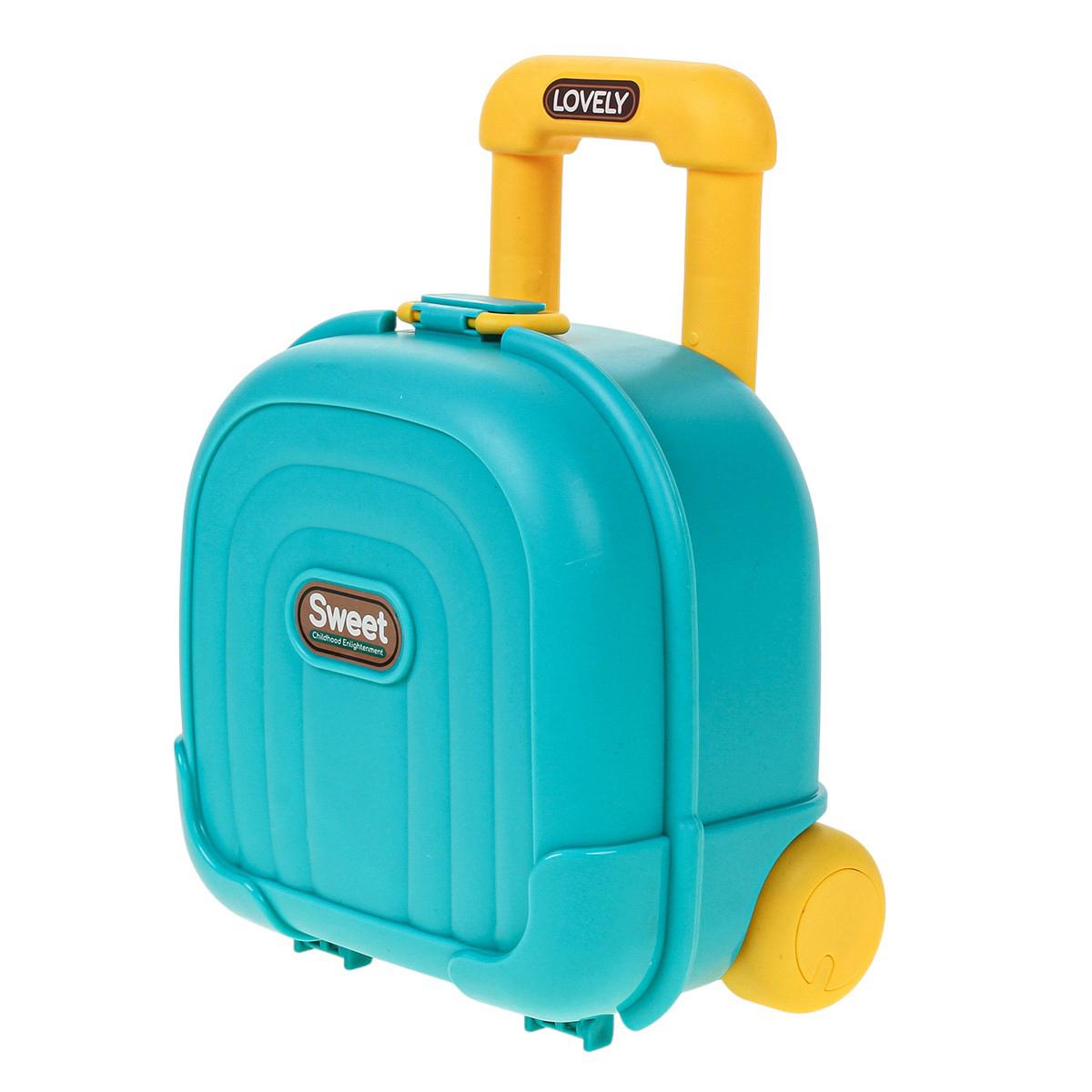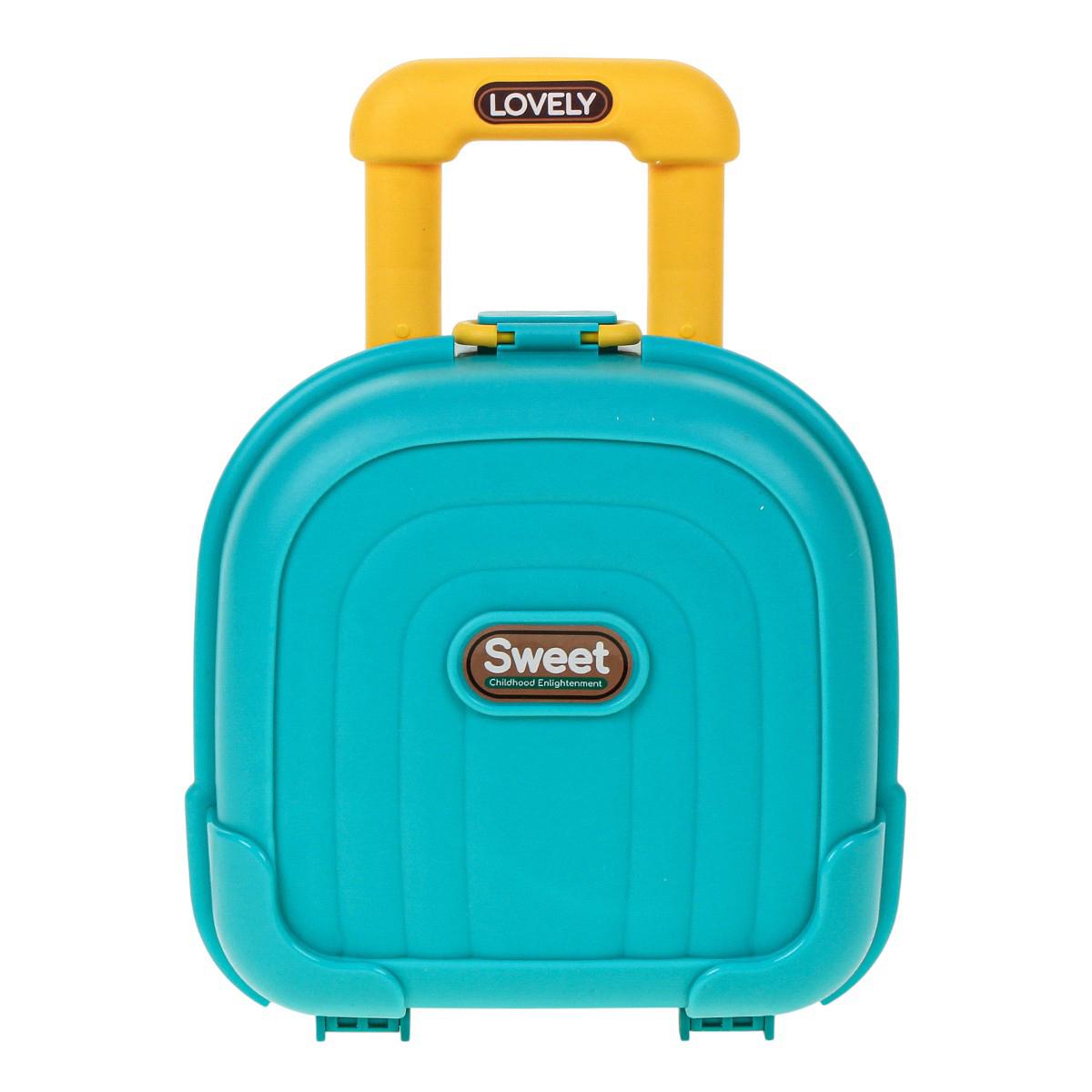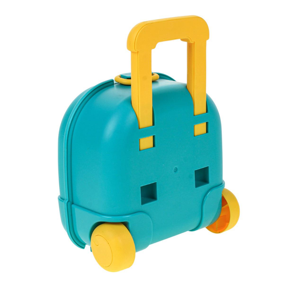 - Удобство хранения и транспортировки: Яркий голубой чемодан на колесах с удобной желтой ручкой станет не только стильным дополнением к игре, но и позволит ребенку легко брать свой "рабочий инструмент" с собой куда угодно. Все предметы удобно размещаются внутри, а прозрачная крышка позволяет видеть содержимое.