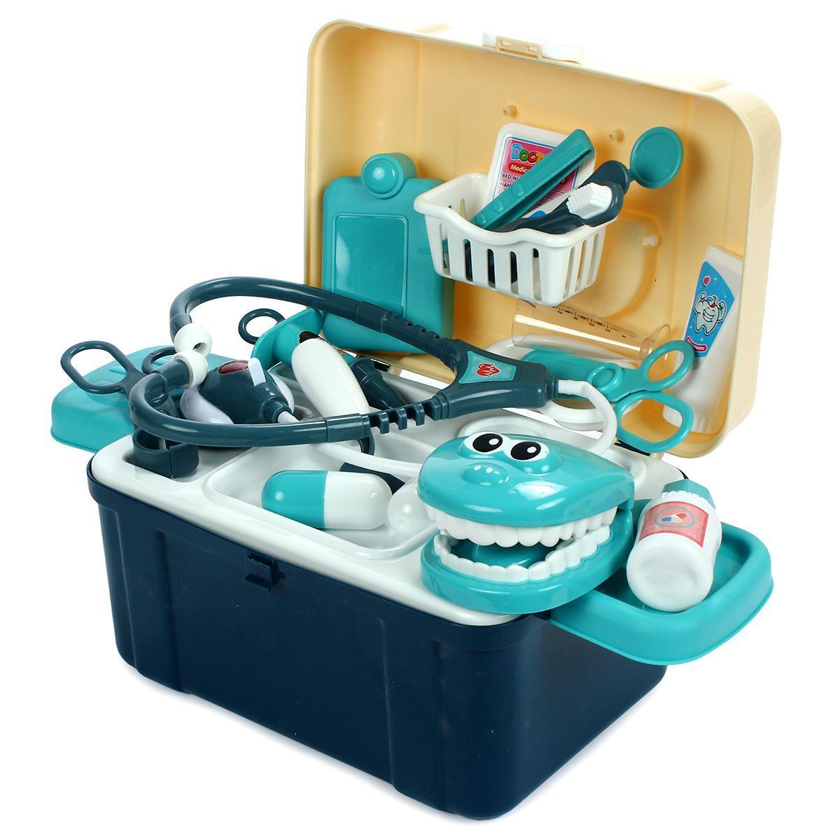 Игровой набор доктора в пластиковом чемодане, 19 предметов, 25х18,5х15 см, сине-желтый