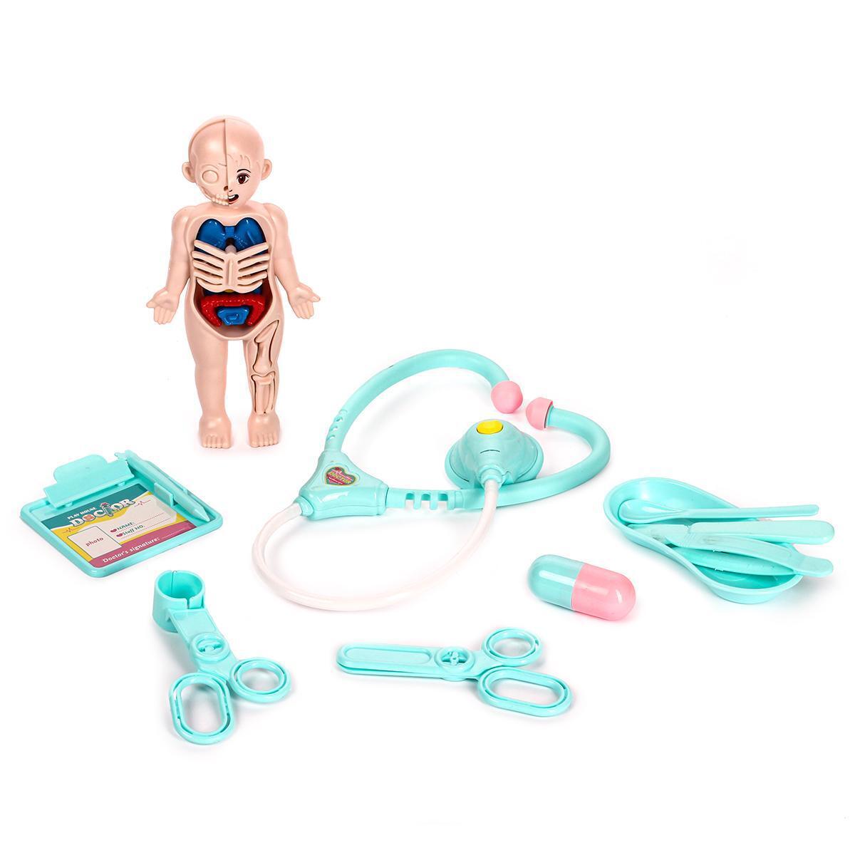 Этот набор позволяет детям окунуться в мир медицины и почувствовать себя настоящими врачами. Комплект включает макет куклы с внутренними органами, игровые инструменты: фонендоскоп, шприц, скальпель, очки, таблетки и другие аксессуары, выполненные из безопасного пластика. Идеально подходит для юных медиков от 3 лет для обучения и развлечений.