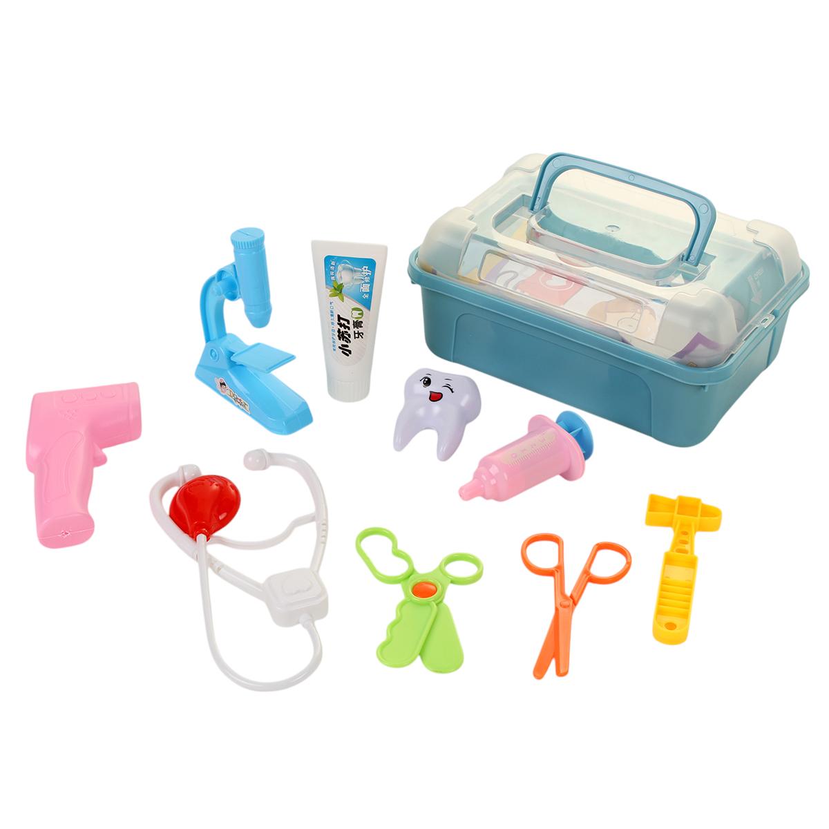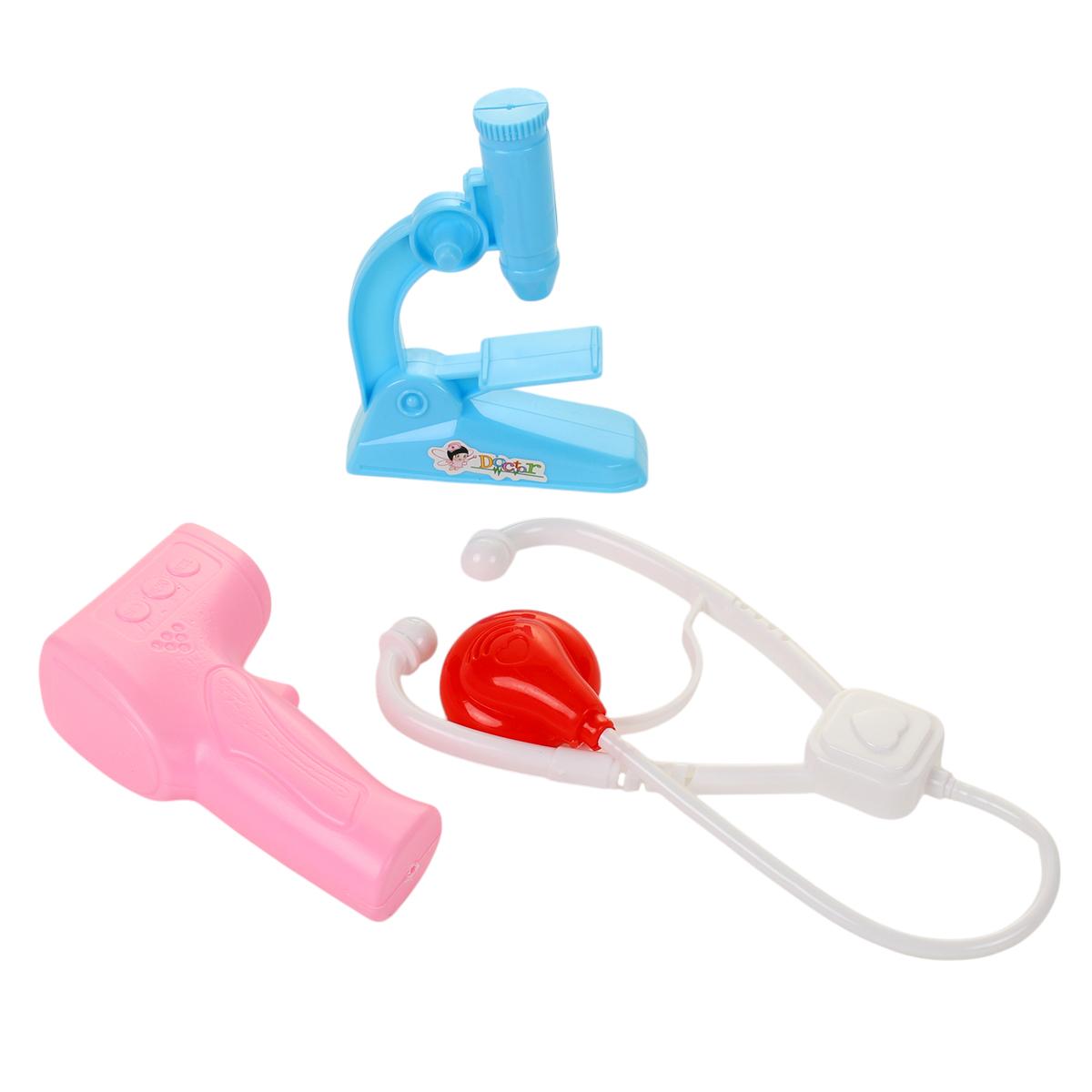 Размер упаковки составляет 18,5 см на 13 см и высоту 8 см, что делает его компактным и удобным для хранения. Все игрушки изготовлены из прочного пластика, что гарантирует их долговечность и безопасность во время игры. Набор включает в себя такие предметы, как микроскоп, ножницы, термометр и другие, что позволяет детям создавать различные сценарии игры.