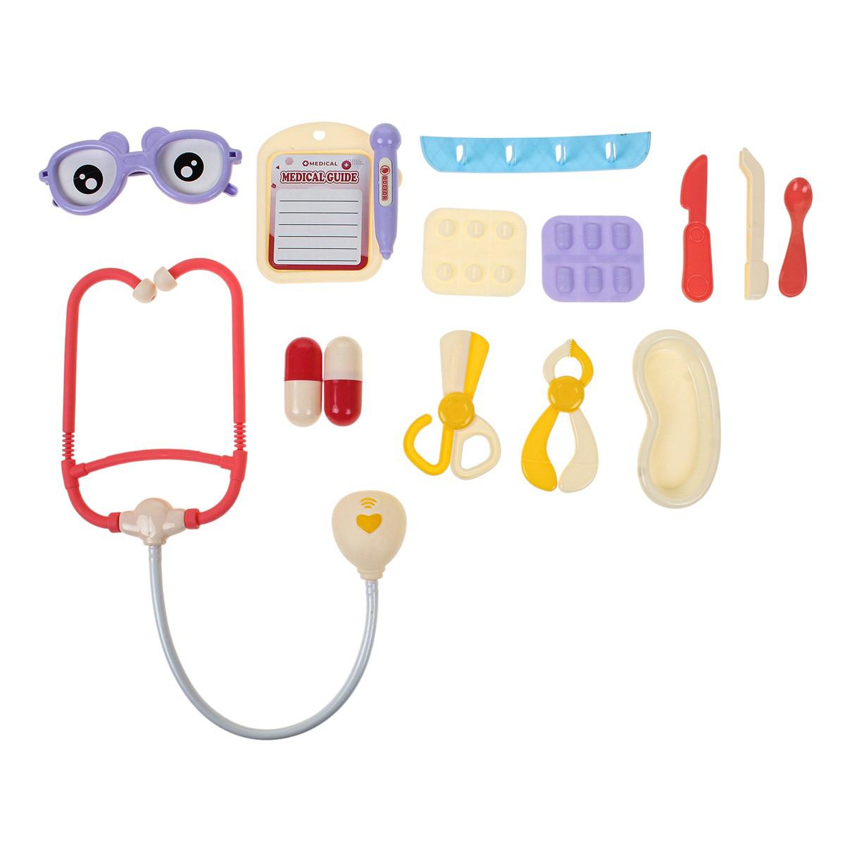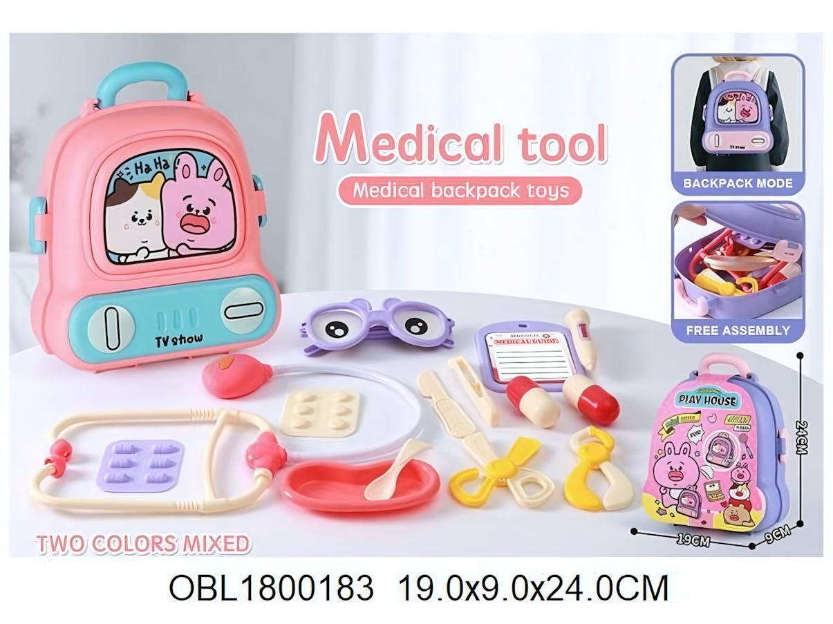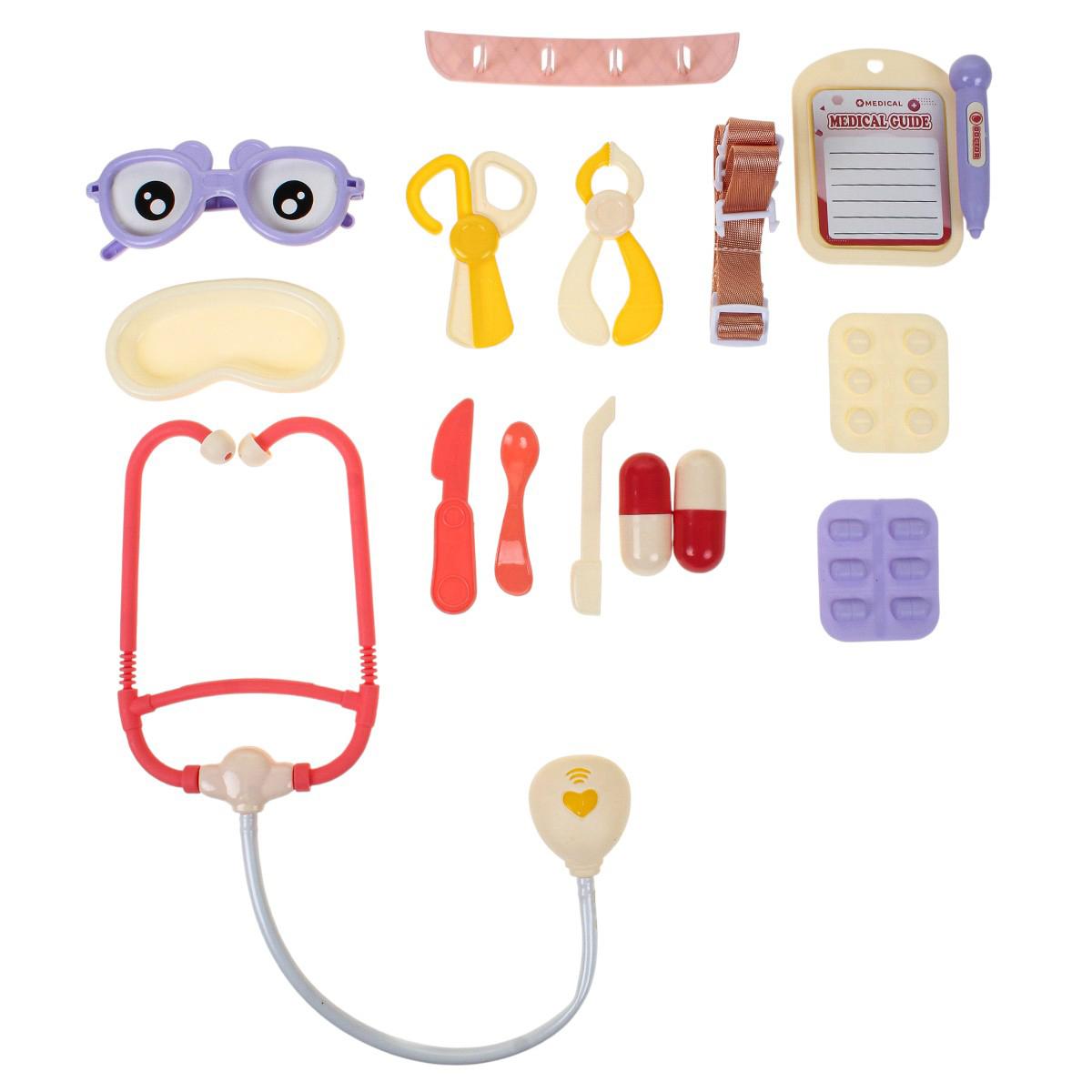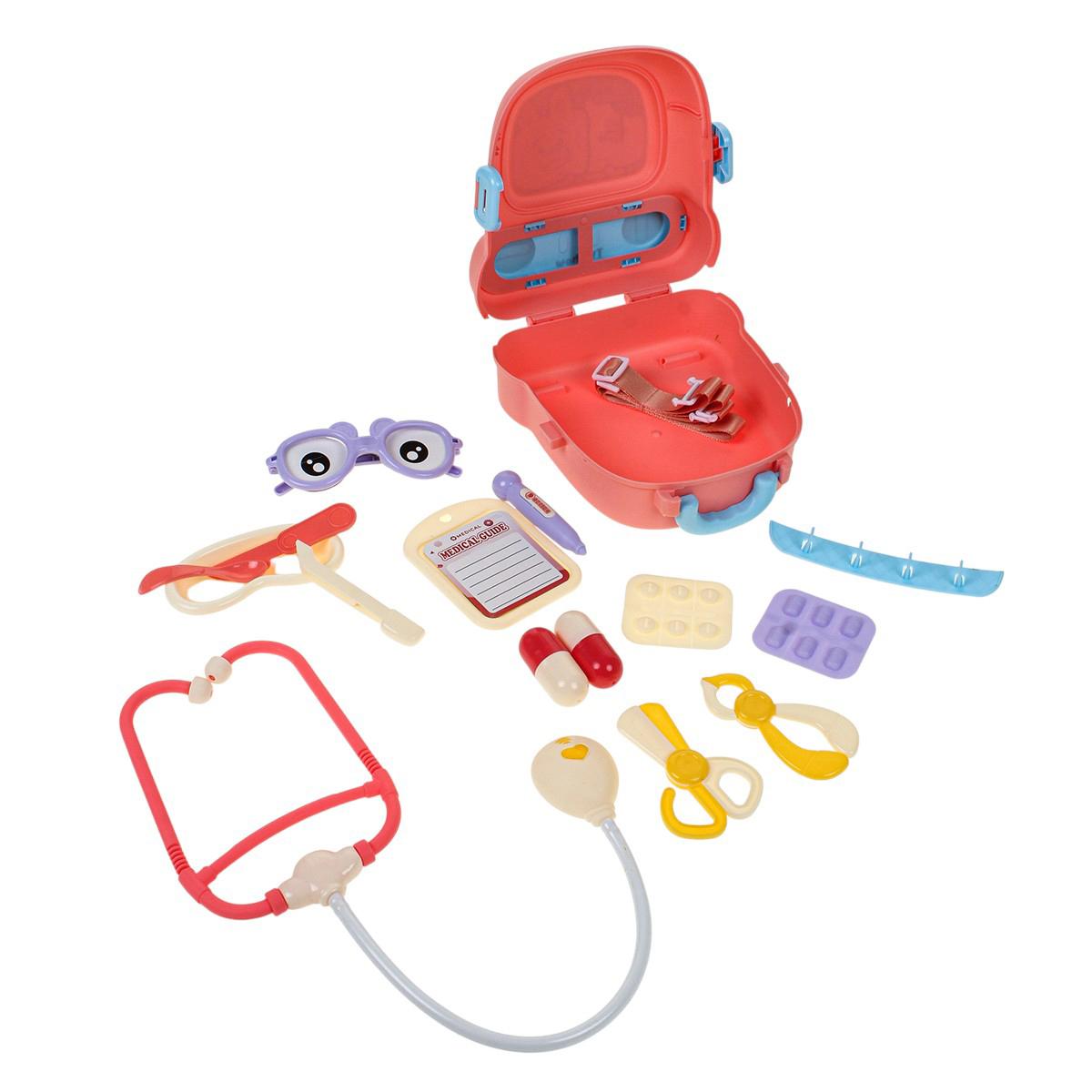 Функциональность: В комплект входит 14 безопасных и ярких игрушек, таких как стетоскоп, щипцы, ножницы, очки и другие аксессуары. Все предметы удобно хранятся в ярком рюкзаке, который легко носить и брать с собой для игр дома и на улице.
