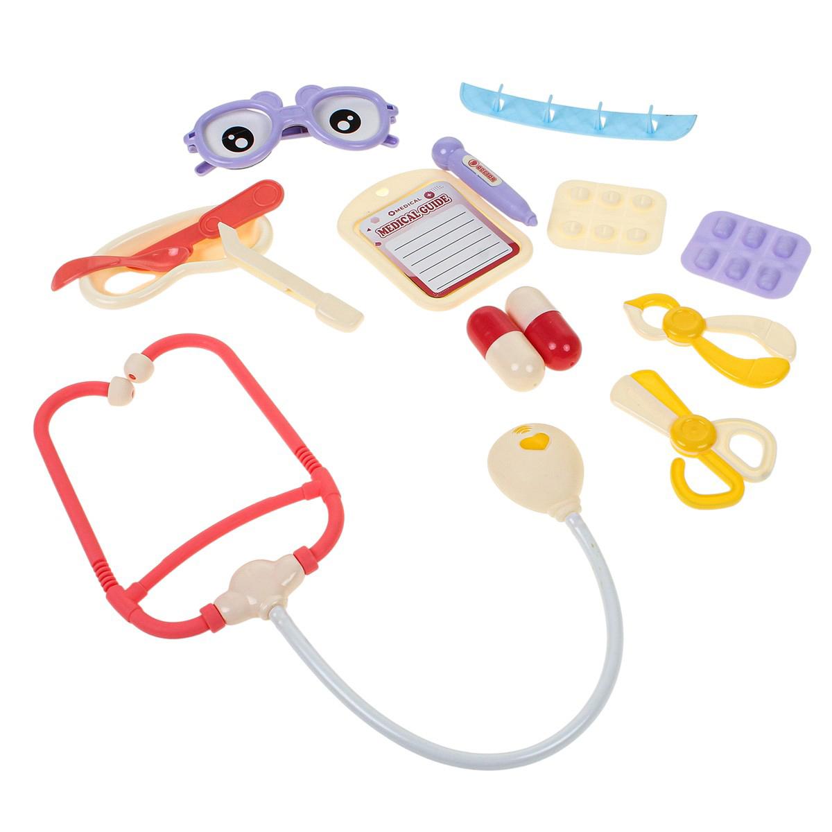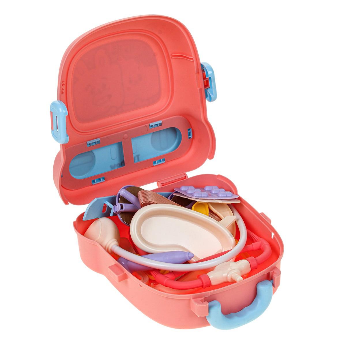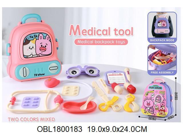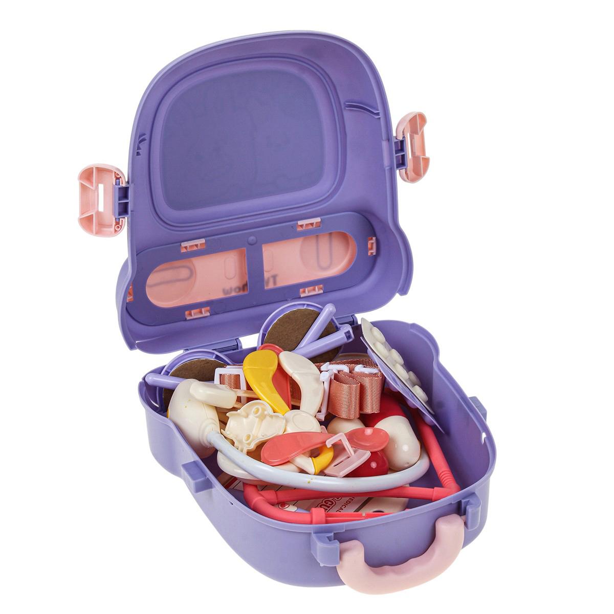 Функциональность: В комплект входит 14 безопасных и ярких игрушек, таких как стетоскоп, щипцы, ножницы, очки и другие аксессуары. Все предметы удобно хранятся в ярком рюкзаке, который легко носить и брать с собой для игр дома и на улице.