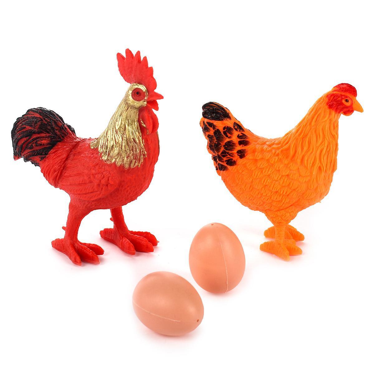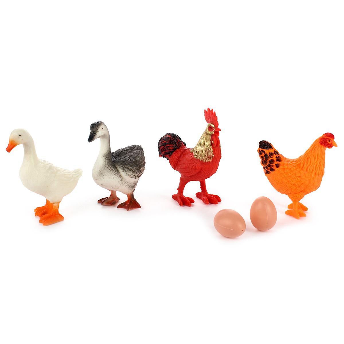 Фигурки домашних птиц, 4шт: петух, курица, гусь, утка + 2 яйца, ПВХ, реалистичные, для игр и коллекций
