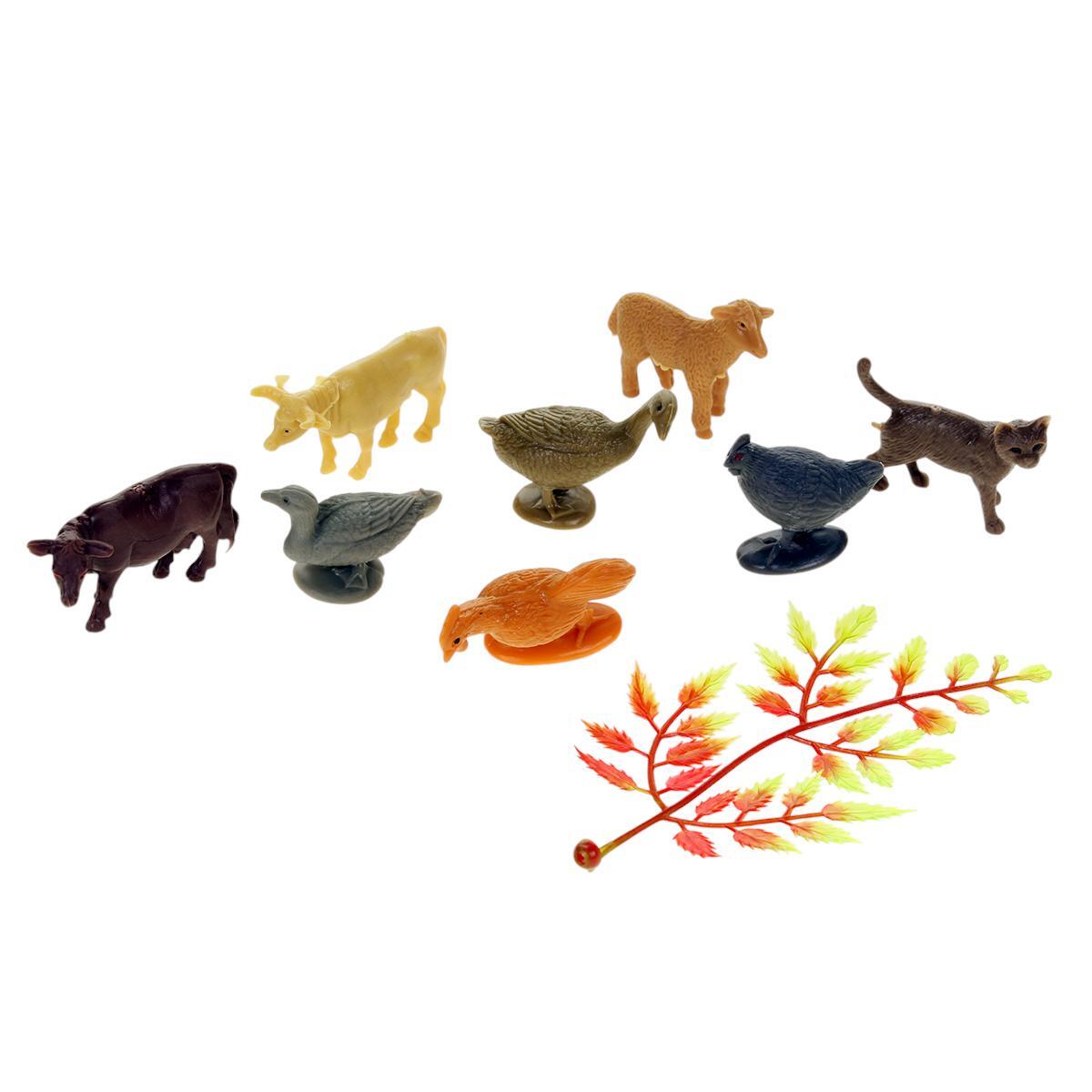 В набор входят фигурки различных домашних животных, таких как корова, коза, курица, гусь, кошка и другие. Размеры фигурок варьируются от 3 до 5 см, что удобно для маленьких ручек.