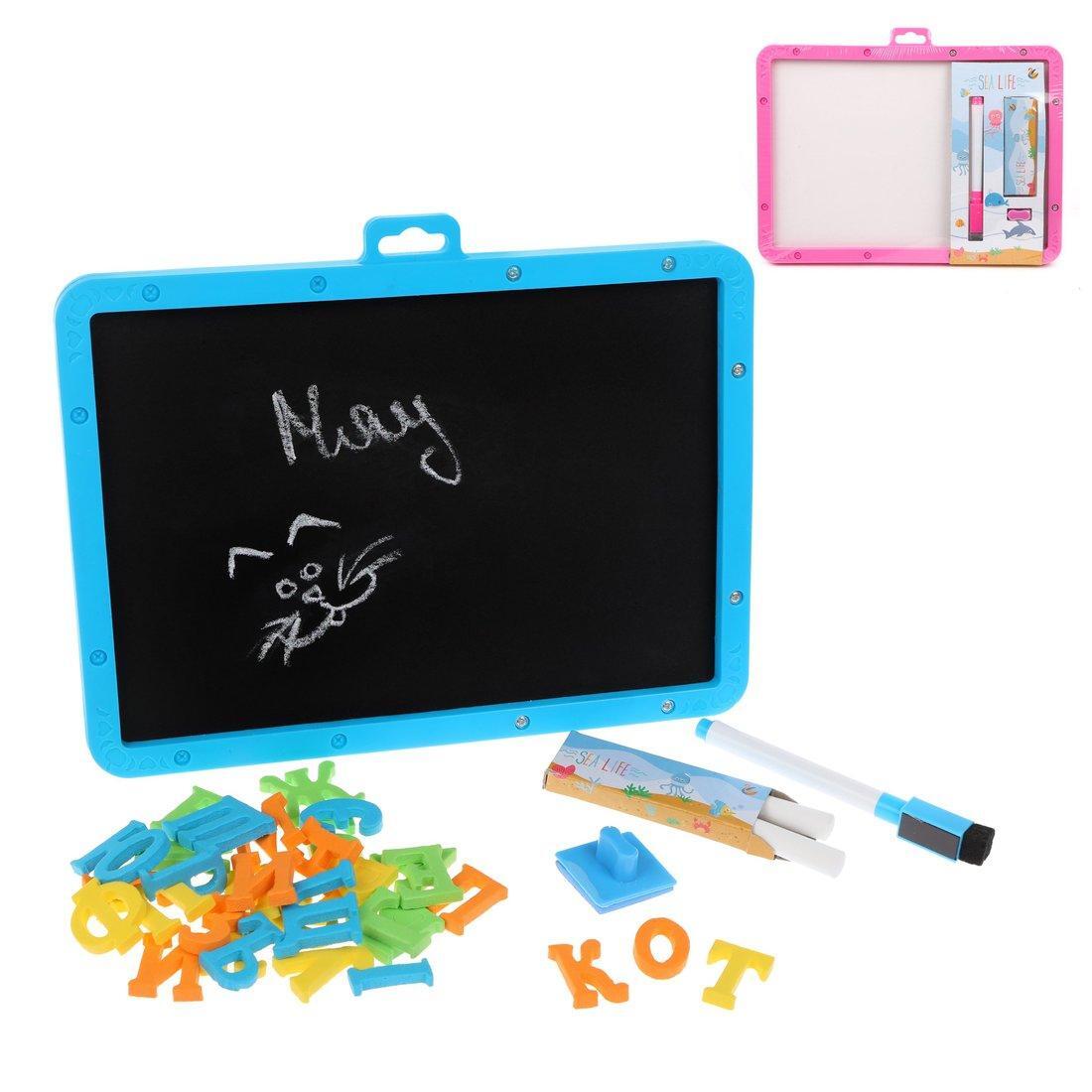 Доска магнитно-маркерная 30х40 см, голубая, с маркером, мелками, буквами и шаблонами морских животных
