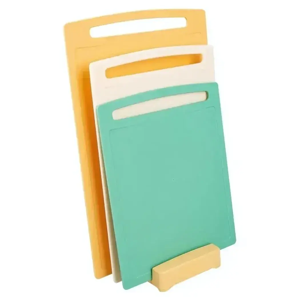 Разделочные доски изготовлены из высококачественного пластика, безопасного для пищевых продуктов. Подставка имеет устойчивое основание и рассчитана на длительное использование. Размеры каждой доски специально разработаны для разных типов продуктов, что помогает поддерживать гигиену приготовления пищи.