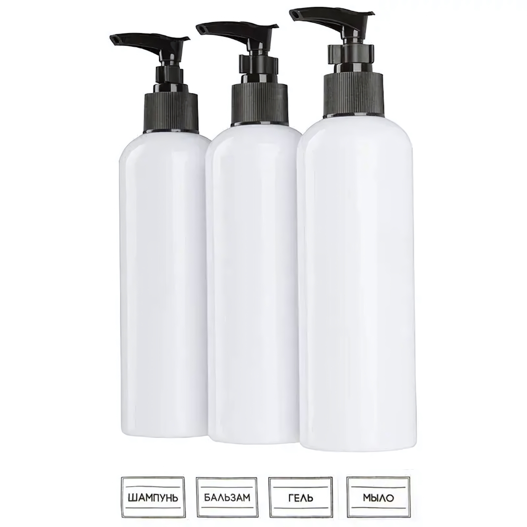 Комплект из трех практичных емкостей создан для рационального хранения гелей, шампуней и жидкого мыла. Идеальное решение для семейного использования — каждый член семьи получит персональный контейнер с четкой маркировкой содержимого.
