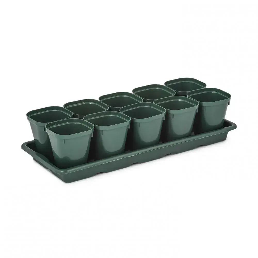 - Полный комплект из 10 горшков и поддона — готов к использованию сразу после покупки