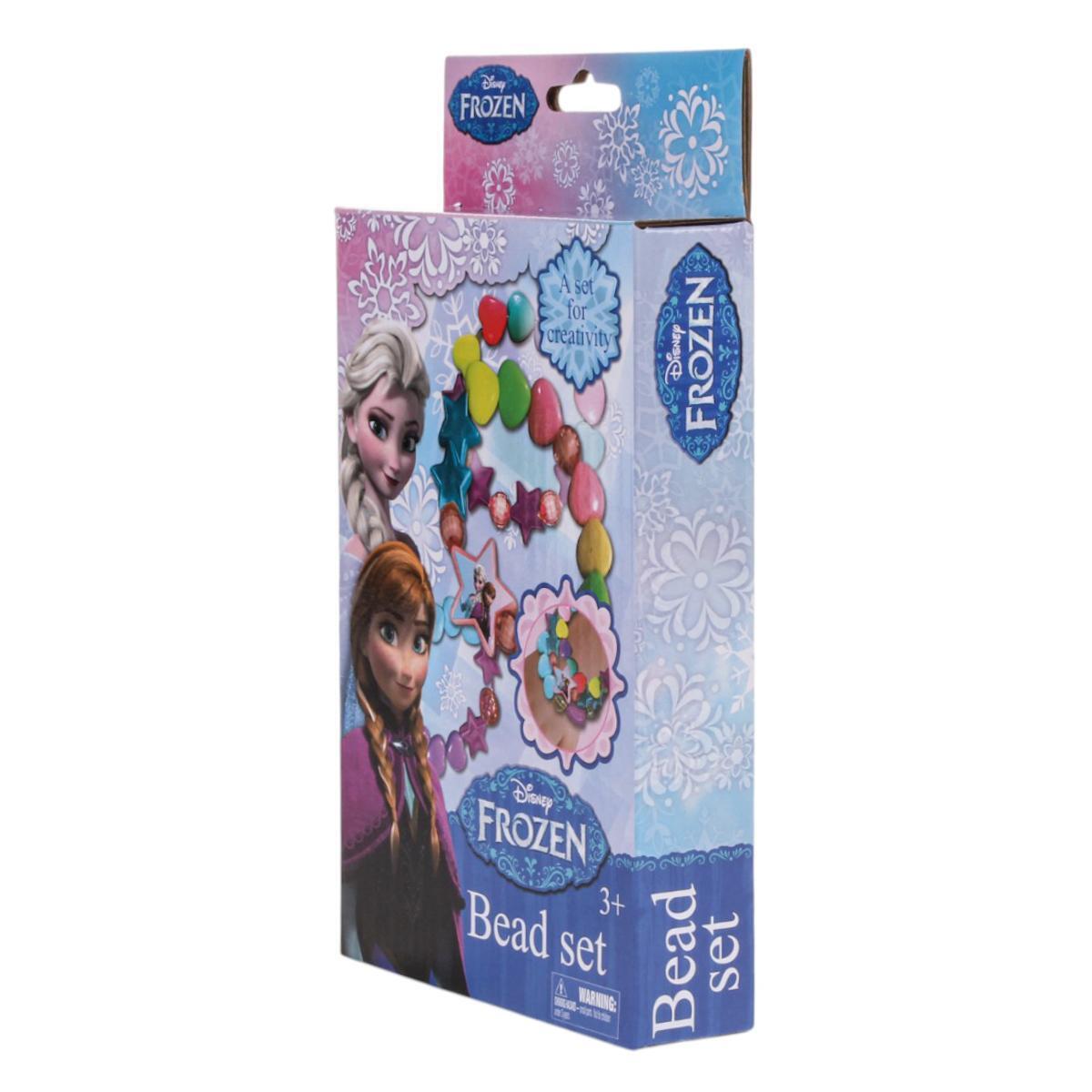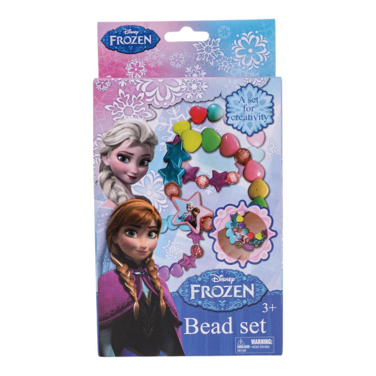 Эластичная нить для плетения, бусины пяти базовых цветов (розовый, голубой, фиолетовый, золотой, серебряный), декоративные подвески в виде снежинок. Все элементы идеально подходят для детских рук — диаметр бусин от 8 до 12 мм.