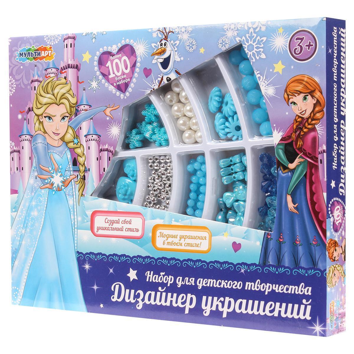 Набор предназначен для детей от 3-х лет и включает все необходимое для творчества. В комплект входит резиночка для украшений и красочная упаковка с иллюстрациями персонажей из мультфильма 'Холодное сердце'. На обороте упаковки представлены примеры плетений и узлов, что поможет детям легко освоить процесс создания украшений.