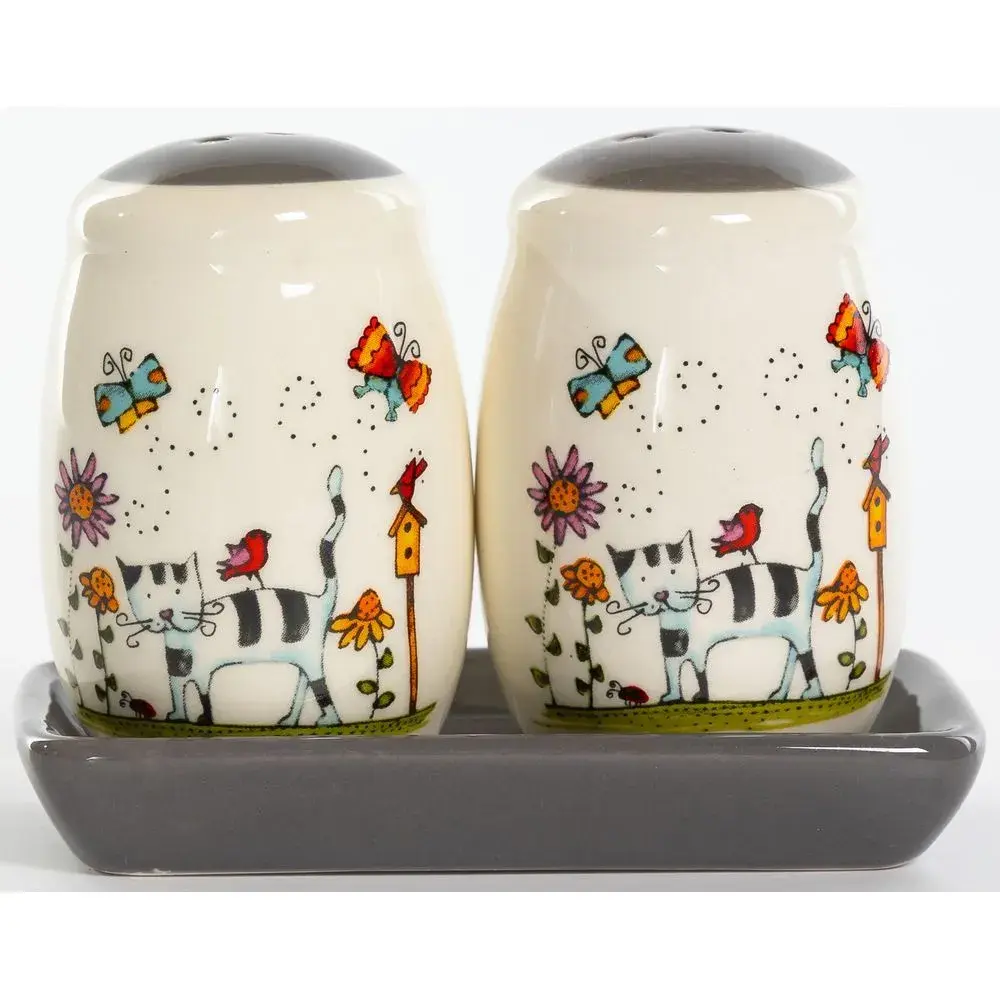 Набор для специй 'Полосатый Кот' 2 предмета, керамическая подставка