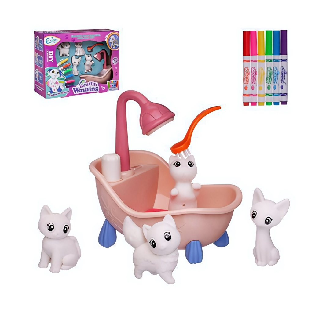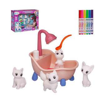 Набор для творчества 'Котята в ванне', 4 фигурки, 6 фломастеров, щетка