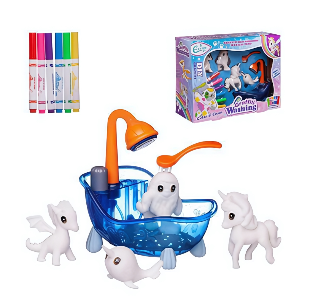 Этот замечательный набор позволит вашему ребенку проявить фантазию и создать уникальных питомцев, которых можно раскрашивать и купать. Яркие фигурки и безопасные маркеры превратят обычное купание в увлекательную игру.