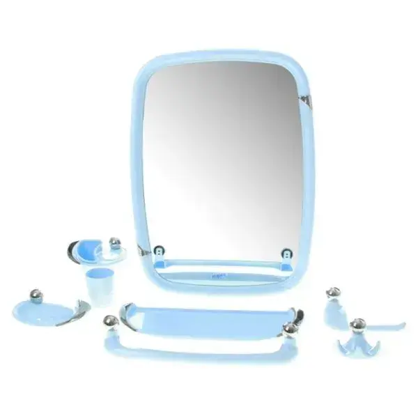 Пластиковые элементы с металлическими вставками устойчивы к влаге и просты в уходе. Зеркало с защитным покрытием предотвращает запотевание, а эргономичная форма крючков обеспечивает безопасное использование. Универсальный размер комплектующих подходит для стандартных ванных комнат.